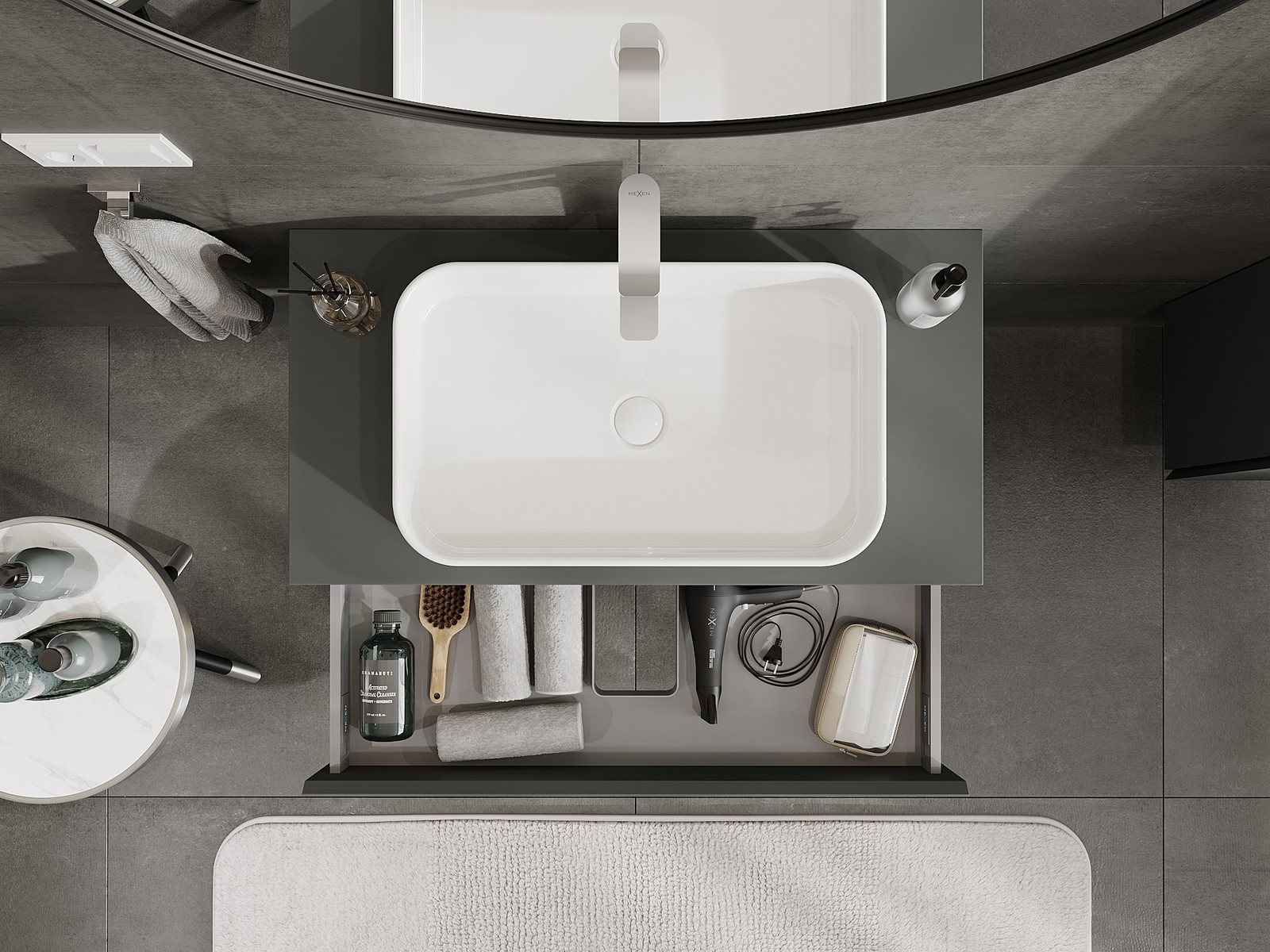 Onze modulaire badkamermeubels kunnen in verschillende kleurconfiguraties met elkaar worden gecombineerd, wat volledige personalisatie mogelijk maakt. Zowel het uiterlijk als de functies van de afzonderlijke elementen kunnen worden gekozen, waardoor de meubels kunnen worden aangepast aan persoonlijke stijlvoorkeuren en gebruikswensen.