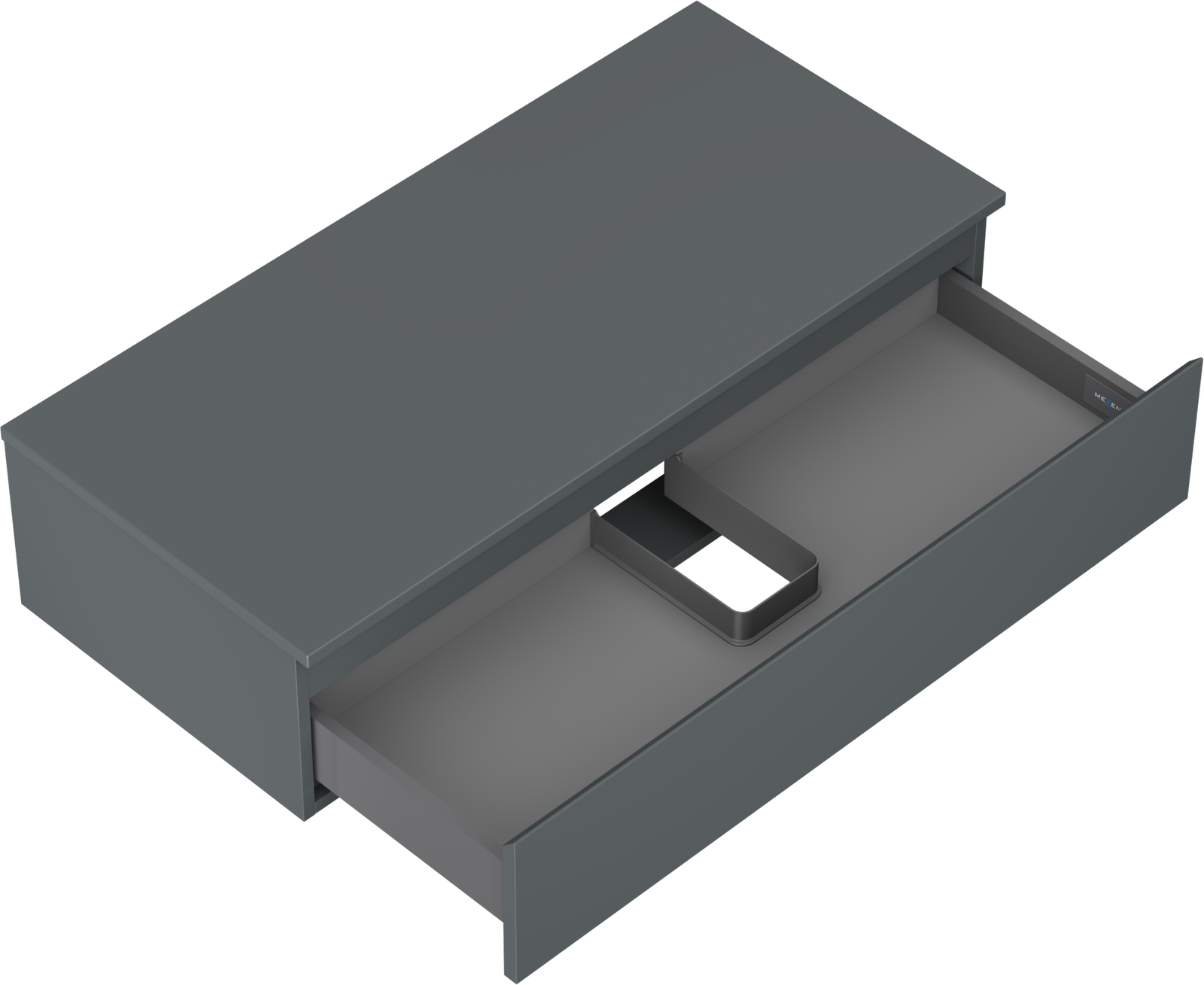 De uitsparing in de lade is zo ontworpen dat het de sifon kan bevatten, die noodzakelijk is in wastafelinstallaties. Hierdoor kan het meubel volledig functioneel worden gemonteerd, zonder dat er ruimte in de lade opgeofferd hoeft te worden voor installatiedoeleinden.