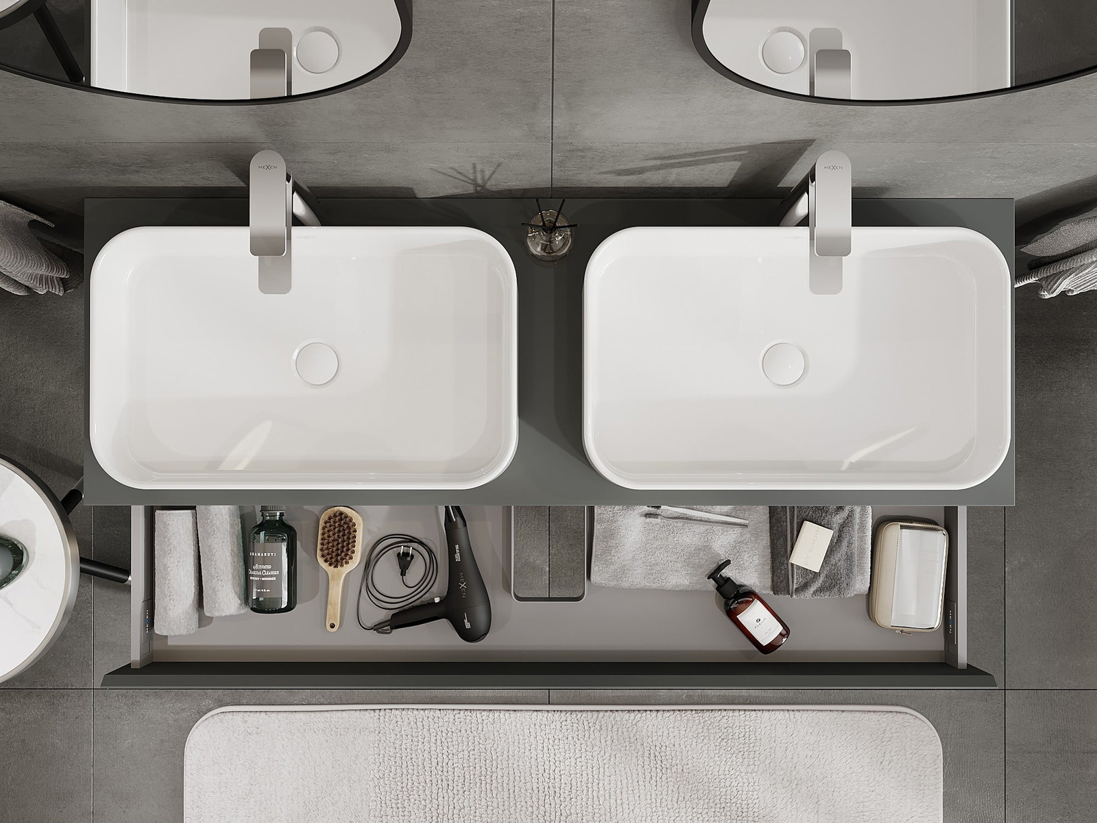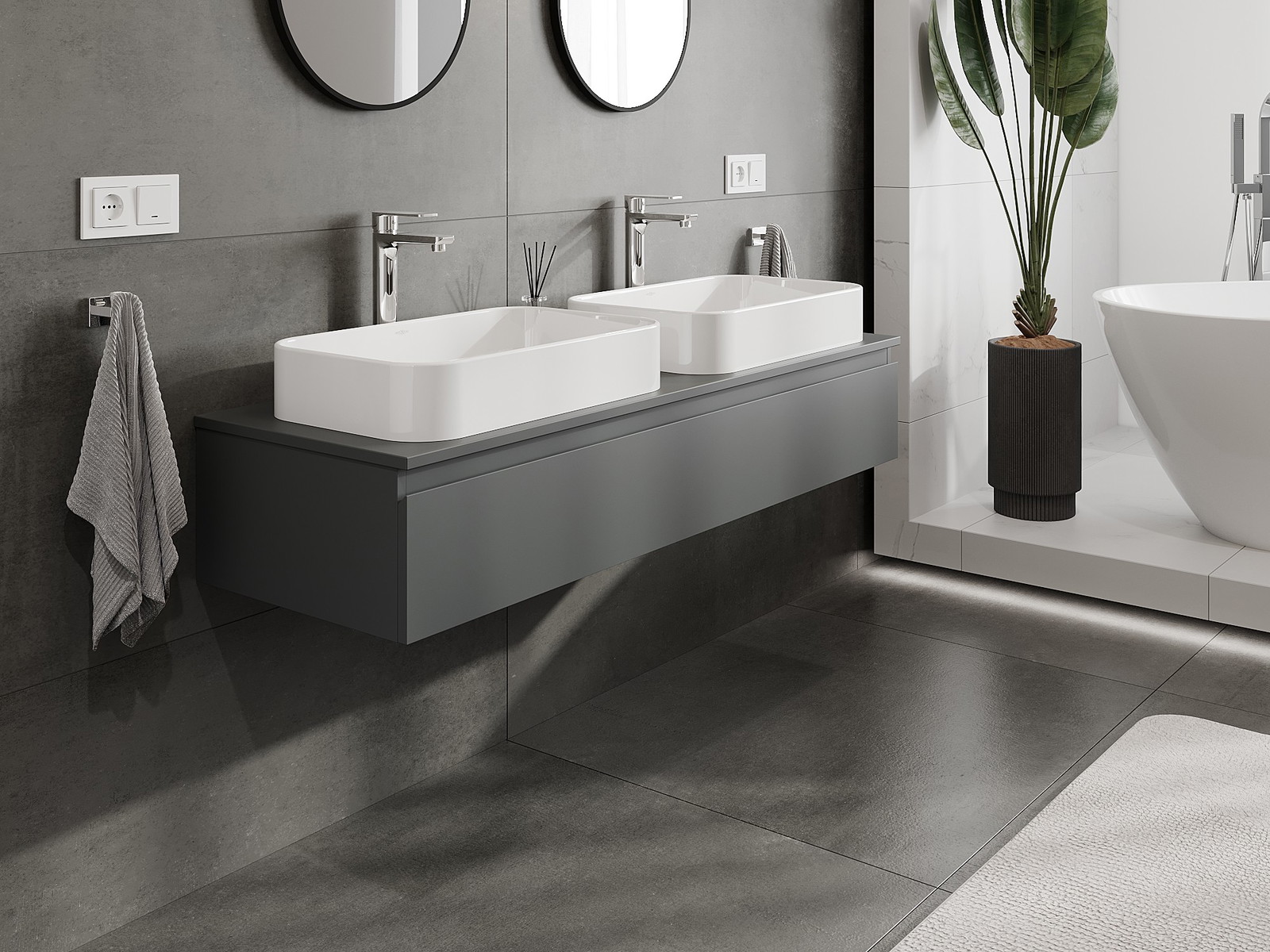 Onze modulaire badkamermeubels kunnen in verschillende kleurconfiguraties met elkaar worden gecombineerd, wat volledige personalisatie mogelijk maakt. Zowel het uiterlijk als de functies van de afzonderlijke elementen kunnen worden gekozen, waardoor de meubels kunnen worden aangepast aan persoonlijke stijlvoorkeuren en gebruikswensen.