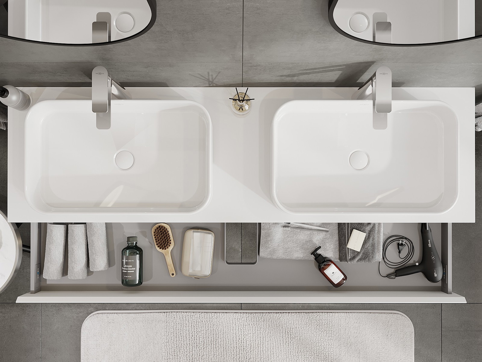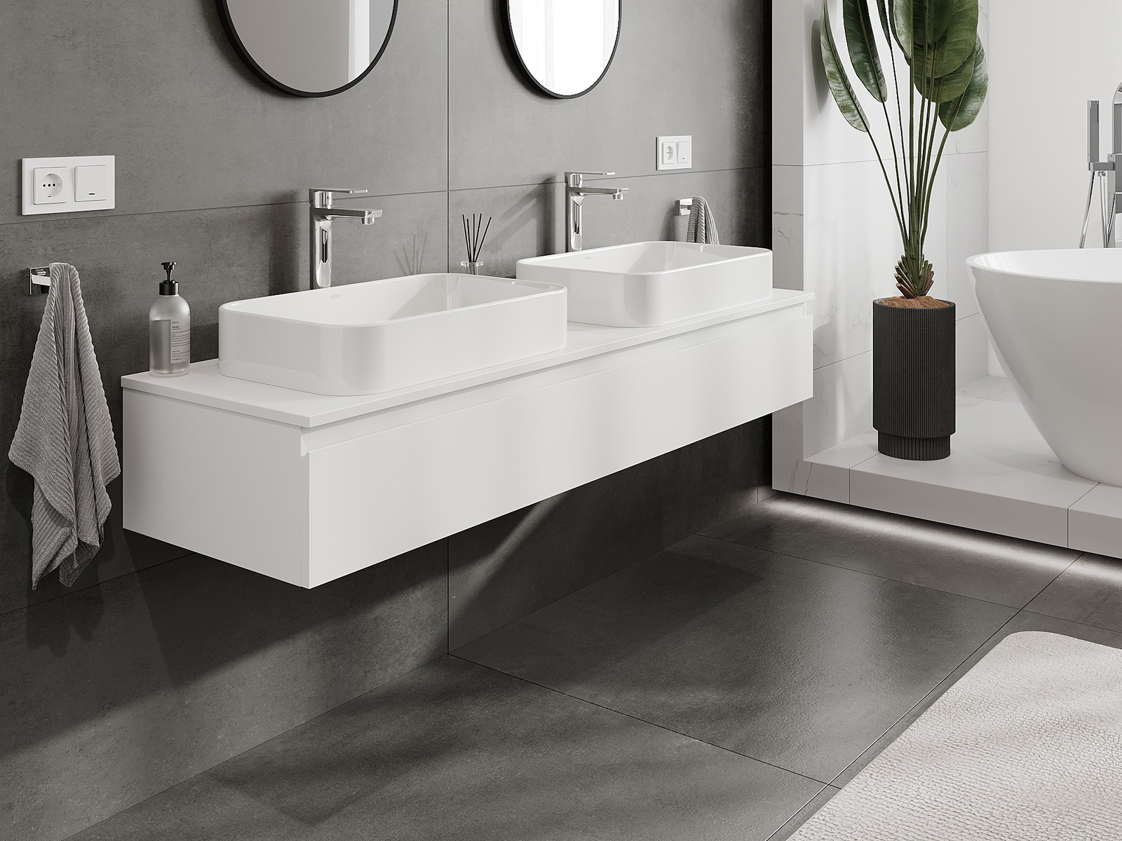 Onze modulaire badkamermeubels kunnen in verschillende kleurconfiguraties met elkaar worden gecombineerd, wat volledige personalisatie mogelijk maakt. Zowel het uiterlijk als de functies van de afzonderlijke elementen kunnen worden gekozen, waardoor de meubels kunnen worden aangepast aan persoonlijke stijlvoorkeuren en gebruikswensen.