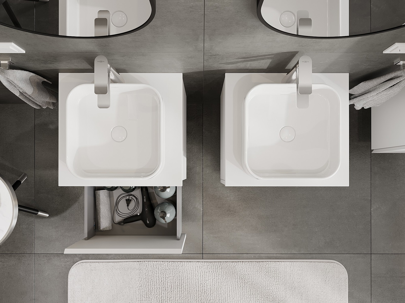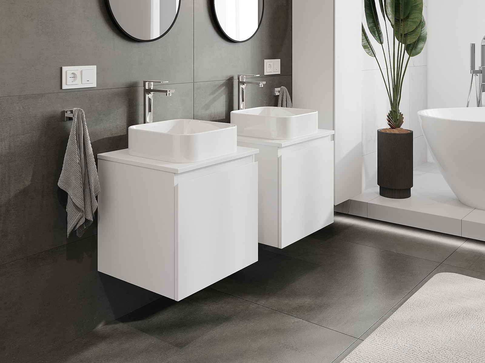 Onze modulaire badkamermeubels kunnen in verschillende kleurconfiguraties met elkaar worden gecombineerd, wat volledige personalisatie mogelijk maakt. Zowel het uiterlijk als de functies van de afzonderlijke elementen kunnen worden gekozen, waardoor de meubels kunnen worden aangepast aan persoonlijke stijlvoorkeuren en gebruikswensen.