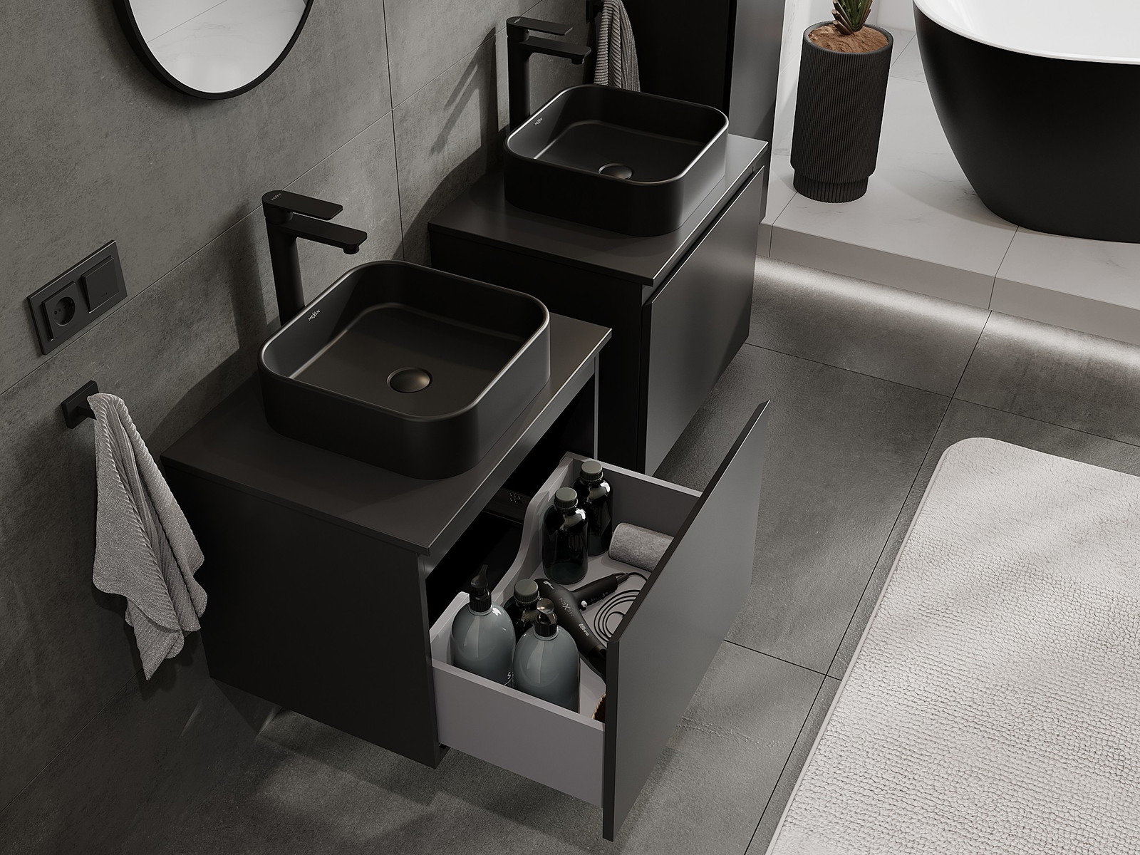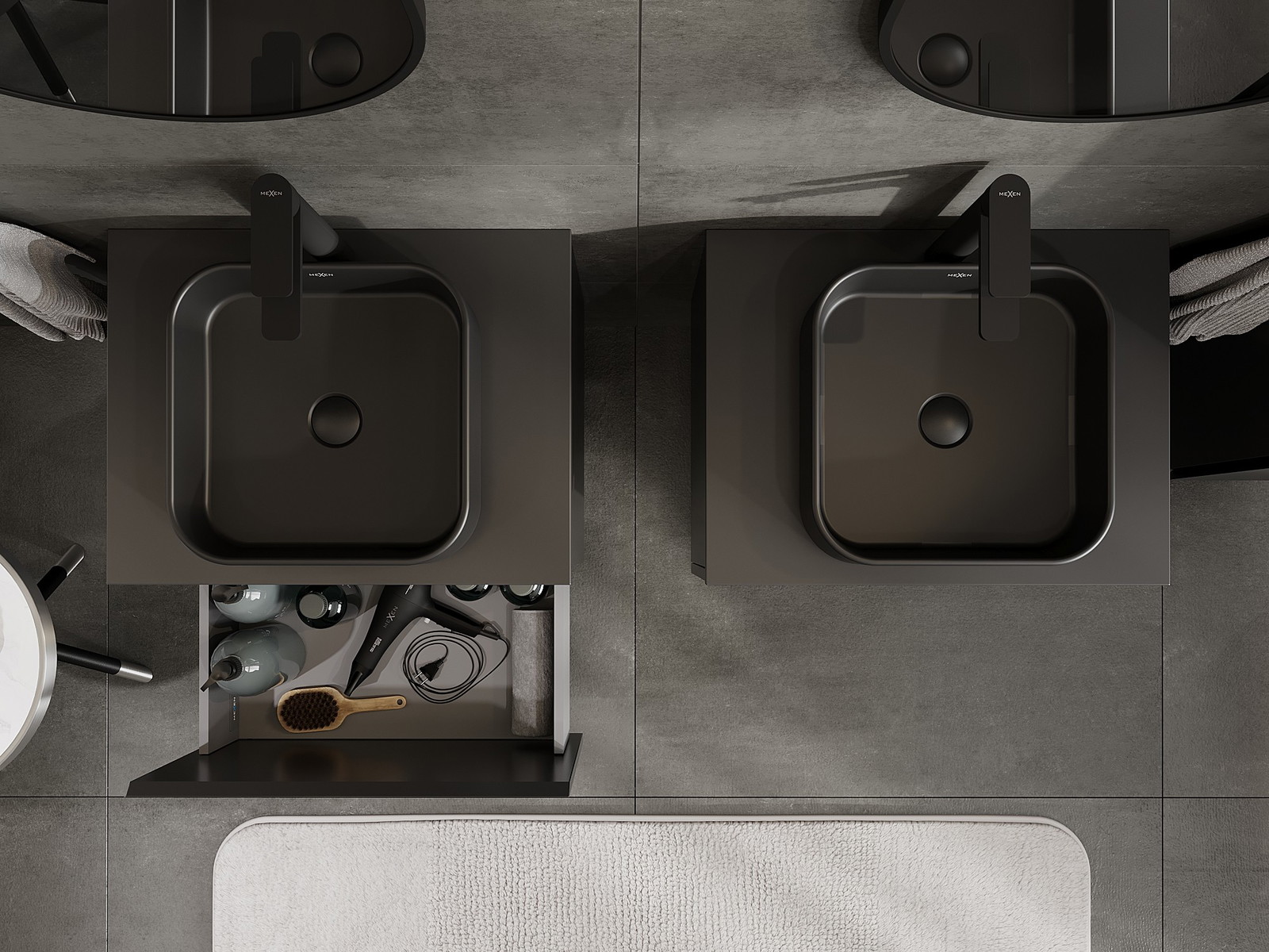 Onze modulaire badkamermeubels kunnen in verschillende kleurconfiguraties met elkaar worden gecombineerd, wat volledige personalisatie mogelijk maakt. Zowel het uiterlijk als de functies van de afzonderlijke elementen kunnen worden gekozen, waardoor de meubels kunnen worden aangepast aan persoonlijke stijlvoorkeuren en gebruikswensen.