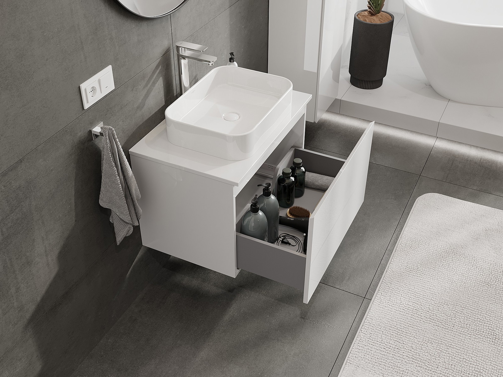 Onze modulaire badkamermeubels kunnen in verschillende kleurconfiguraties met elkaar worden gecombineerd, wat volledige personalisatie mogelijk maakt. Zowel het uiterlijk als de functies van de afzonderlijke elementen kunnen worden gekozen, waardoor de meubels kunnen worden aangepast aan persoonlijke stijlvoorkeuren en gebruikswensen.