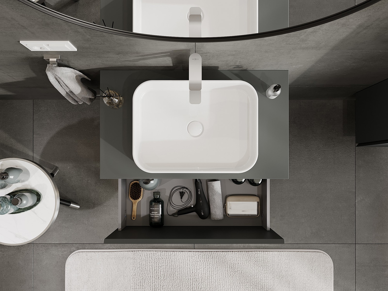 Mexen Orio badkamerkastje voor onder de wastafel 80 cm met blad, 1 lade, grafiet mat - 91A10-08047-1-BFC66