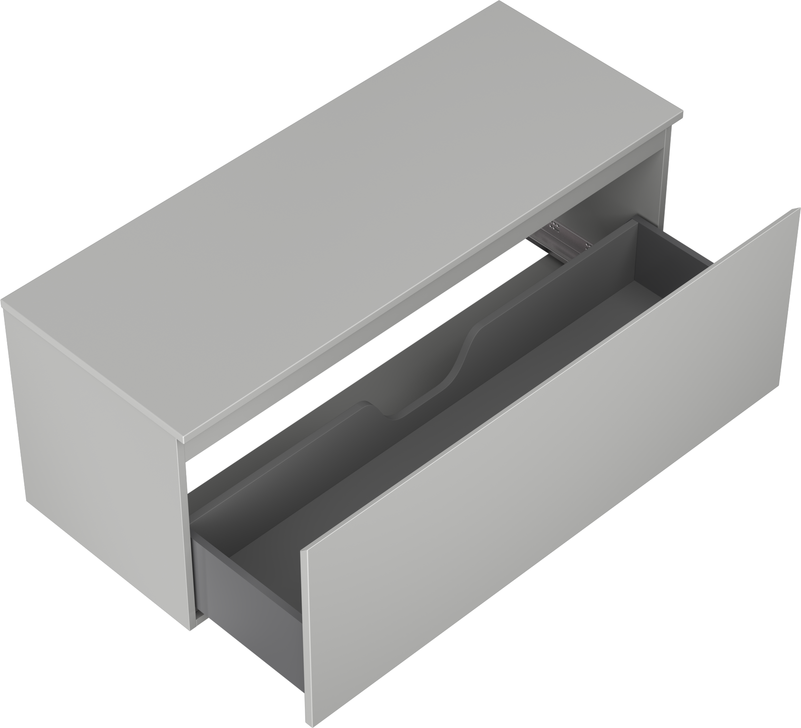 De uitsparing in de lade is zo ontworpen dat het de sifon kan bevatten, die noodzakelijk is in wastafelinstallaties. Hierdoor kan het meubel volledig functioneel worden gemonteerd, zonder dat er ruimte in de lade opgeofferd hoeft te worden voor installatiedoeleinden.
