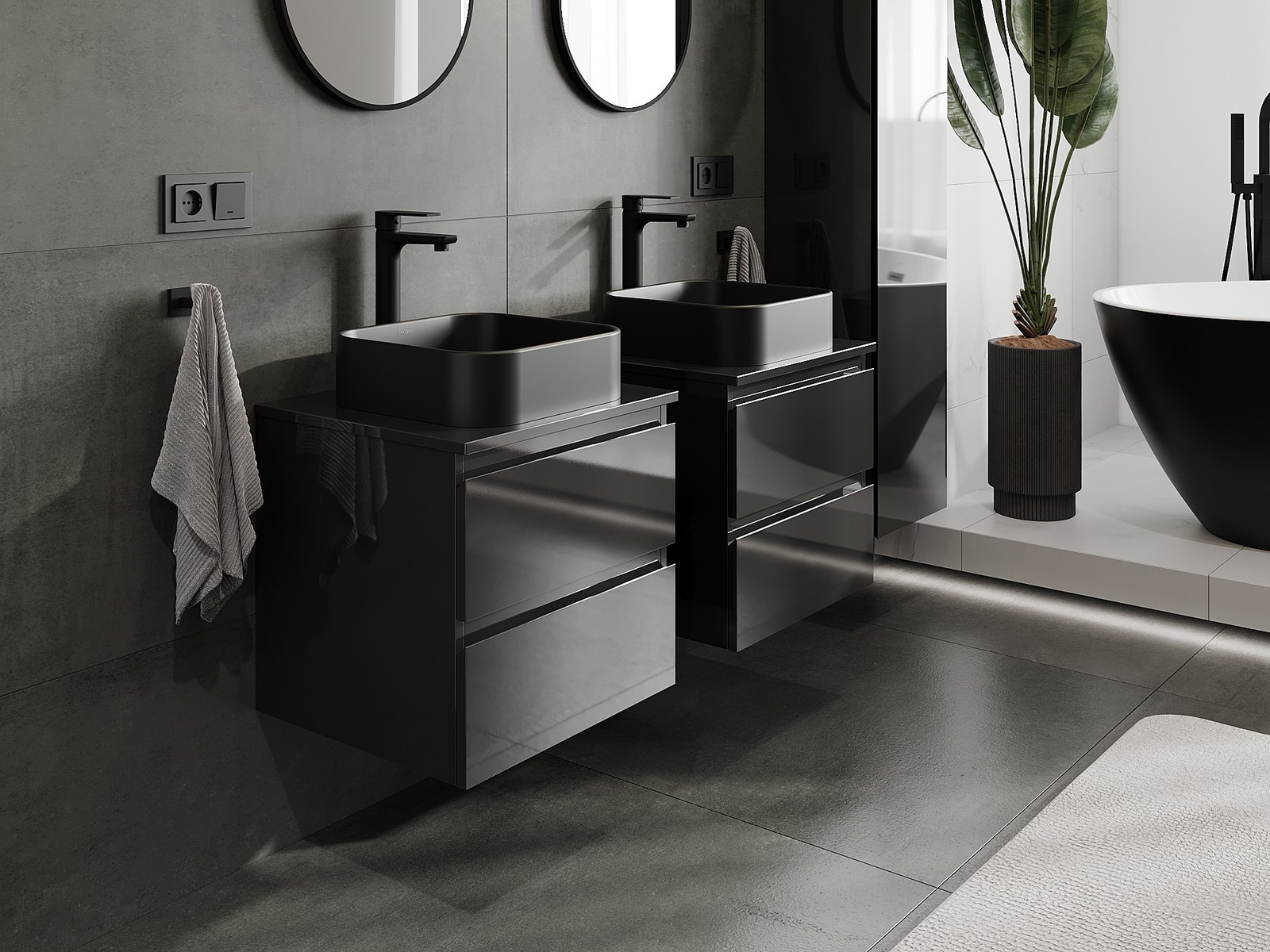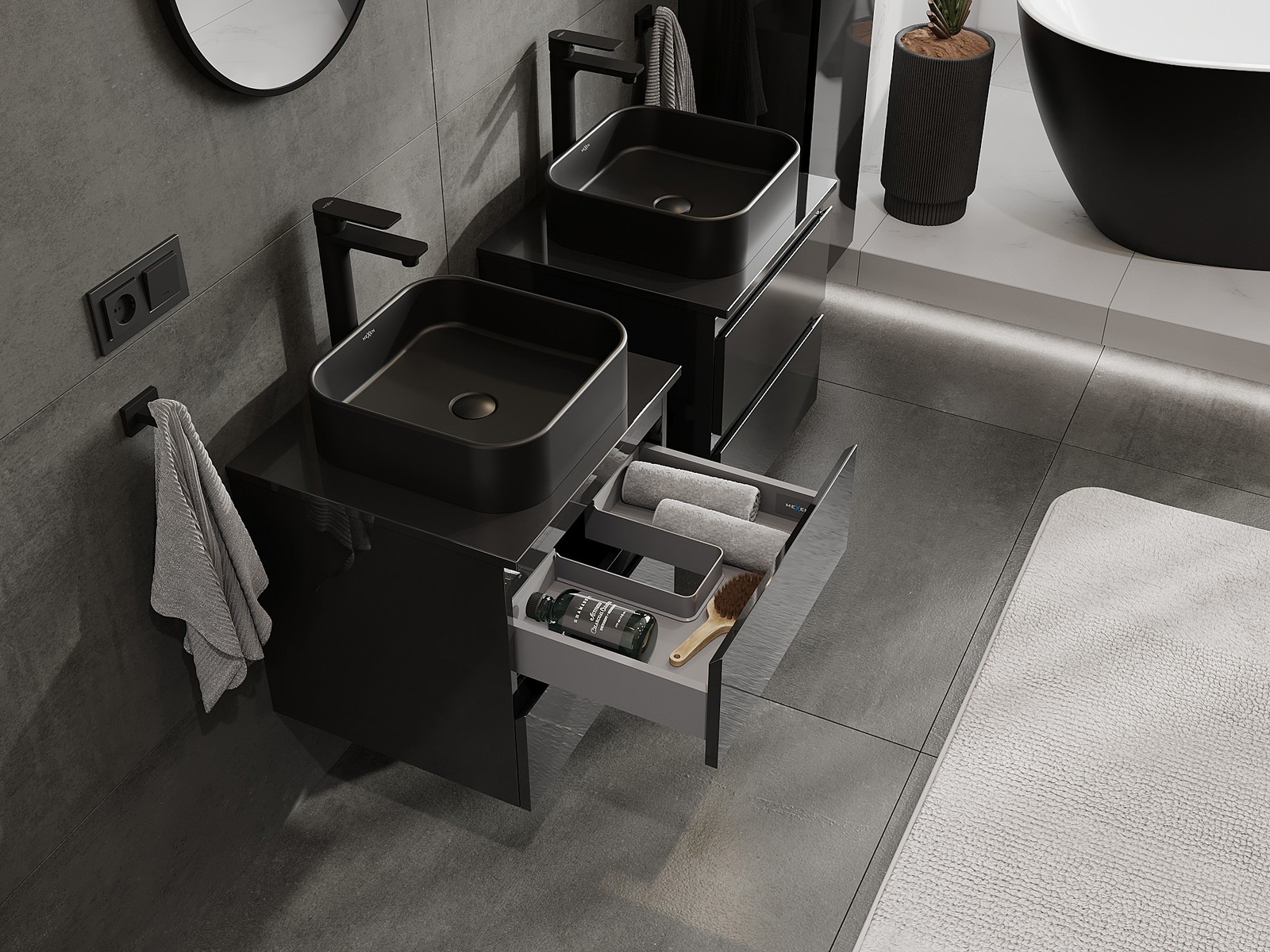 Onze modulaire badkamermeubels kunnen in verschillende kleurconfiguraties met elkaar worden gecombineerd, wat volledige personalisatie mogelijk maakt. Zowel het uiterlijk als de functies van de afzonderlijke elementen kunnen worden gekozen, waardoor de meubels kunnen worden aangepast aan persoonlijke stijlvoorkeuren en gebruikswensen.