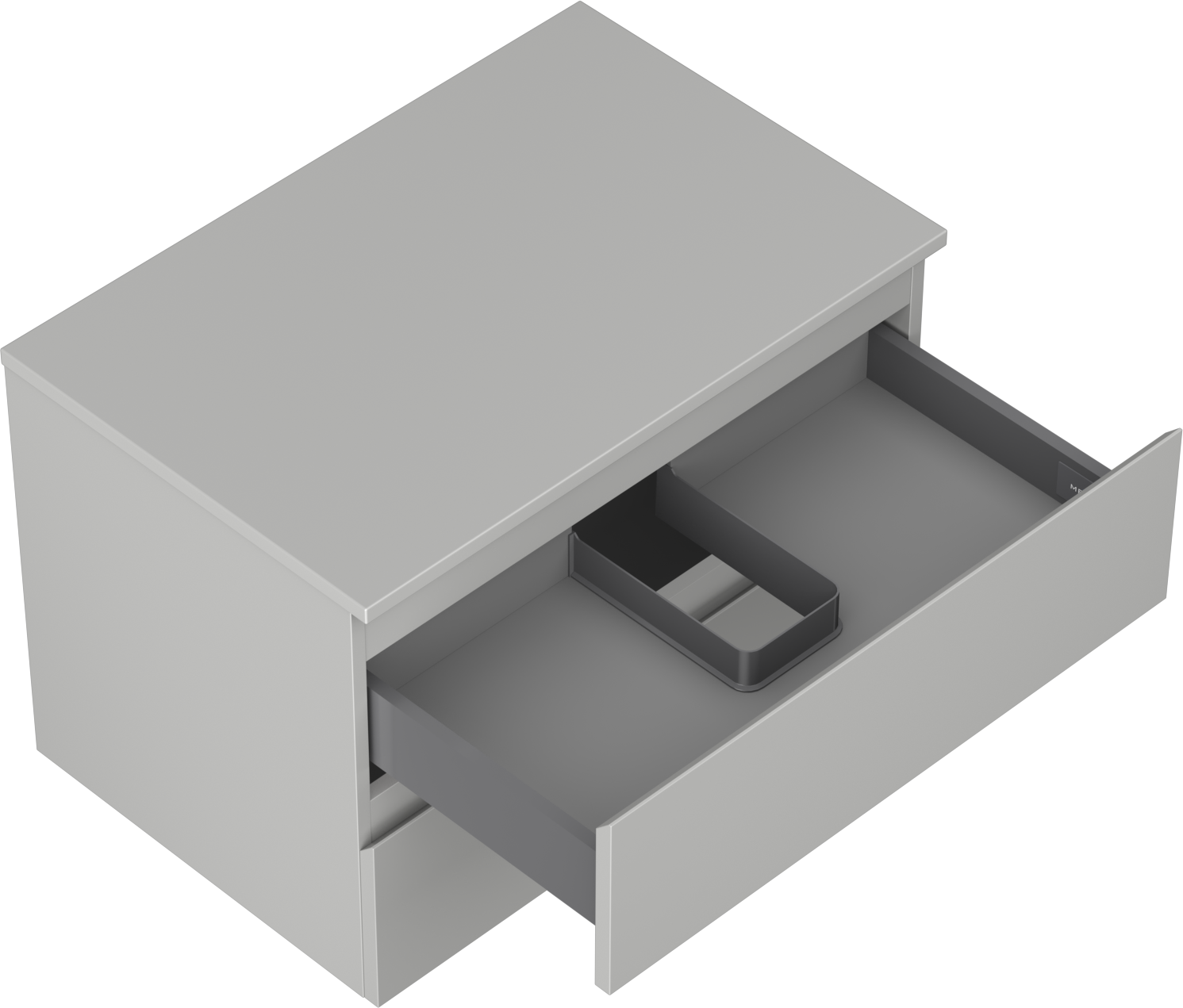 De uitsparing in de lade is zo ontworpen dat het de sifon kan bevatten, die noodzakelijk is in wastafelinstallaties. Hierdoor kan het meubel volledig functioneel worden gemonteerd, zonder dat er ruimte in de lade opgeofferd hoeft te worden voor installatiedoeleinden.