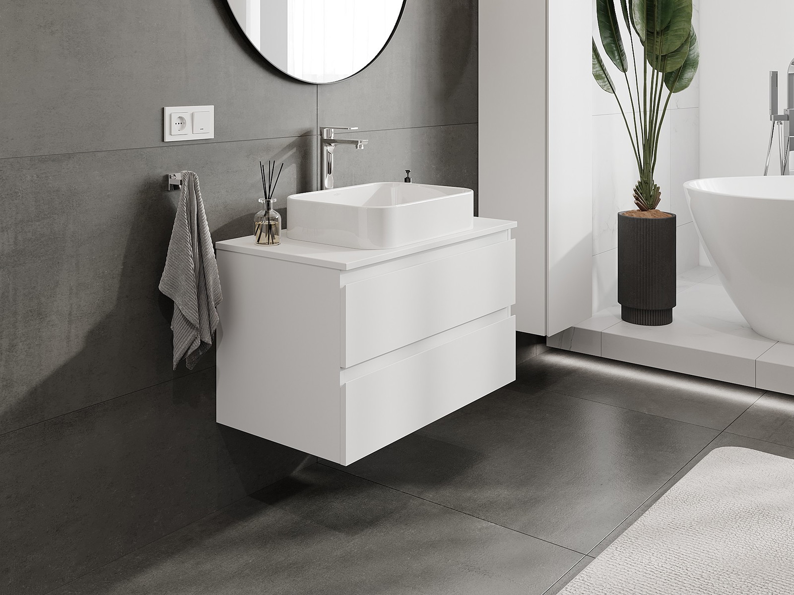 Onze modulaire badkamermeubels kunnen in verschillende kleurconfiguraties met elkaar worden gecombineerd, wat volledige personalisatie mogelijk maakt. Zowel het uiterlijk als de functies van de afzonderlijke elementen kunnen worden gekozen, waardoor de meubels kunnen worden aangepast aan persoonlijke stijlvoorkeuren en gebruikswensen.