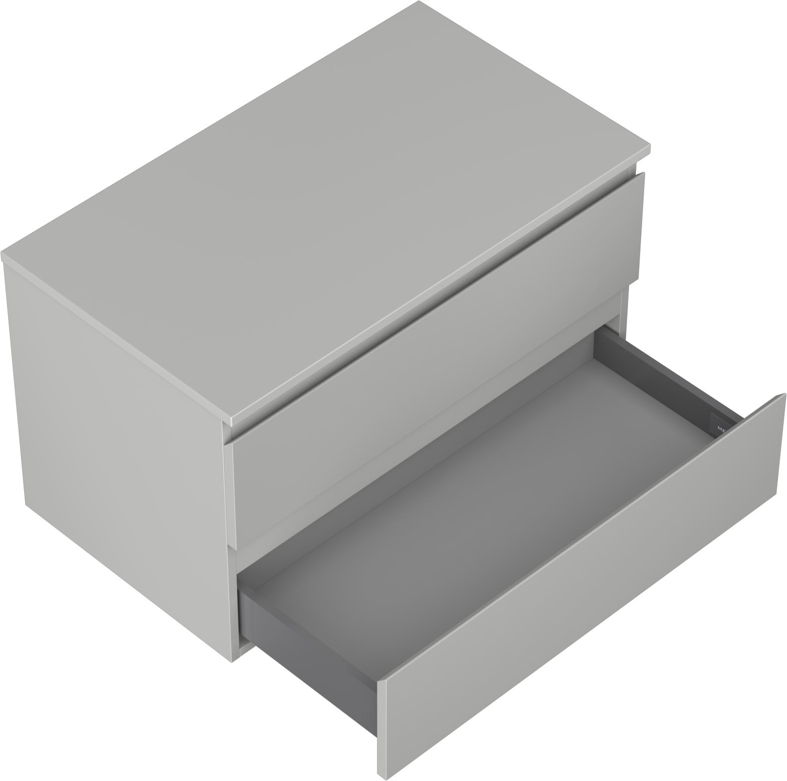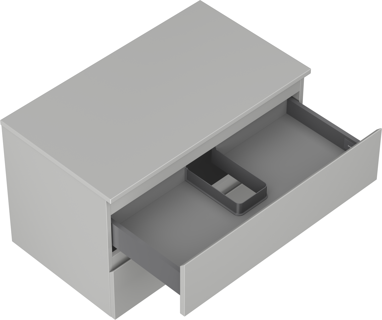 De uitsparing in de lade is zo ontworpen dat het de sifon kan bevatten, die noodzakelijk is in wastafelinstallaties. Hierdoor kan het meubel volledig functioneel worden gemonteerd, zonder dat er ruimte in de lade opgeofferd hoeft te worden voor installatiedoeleinden.