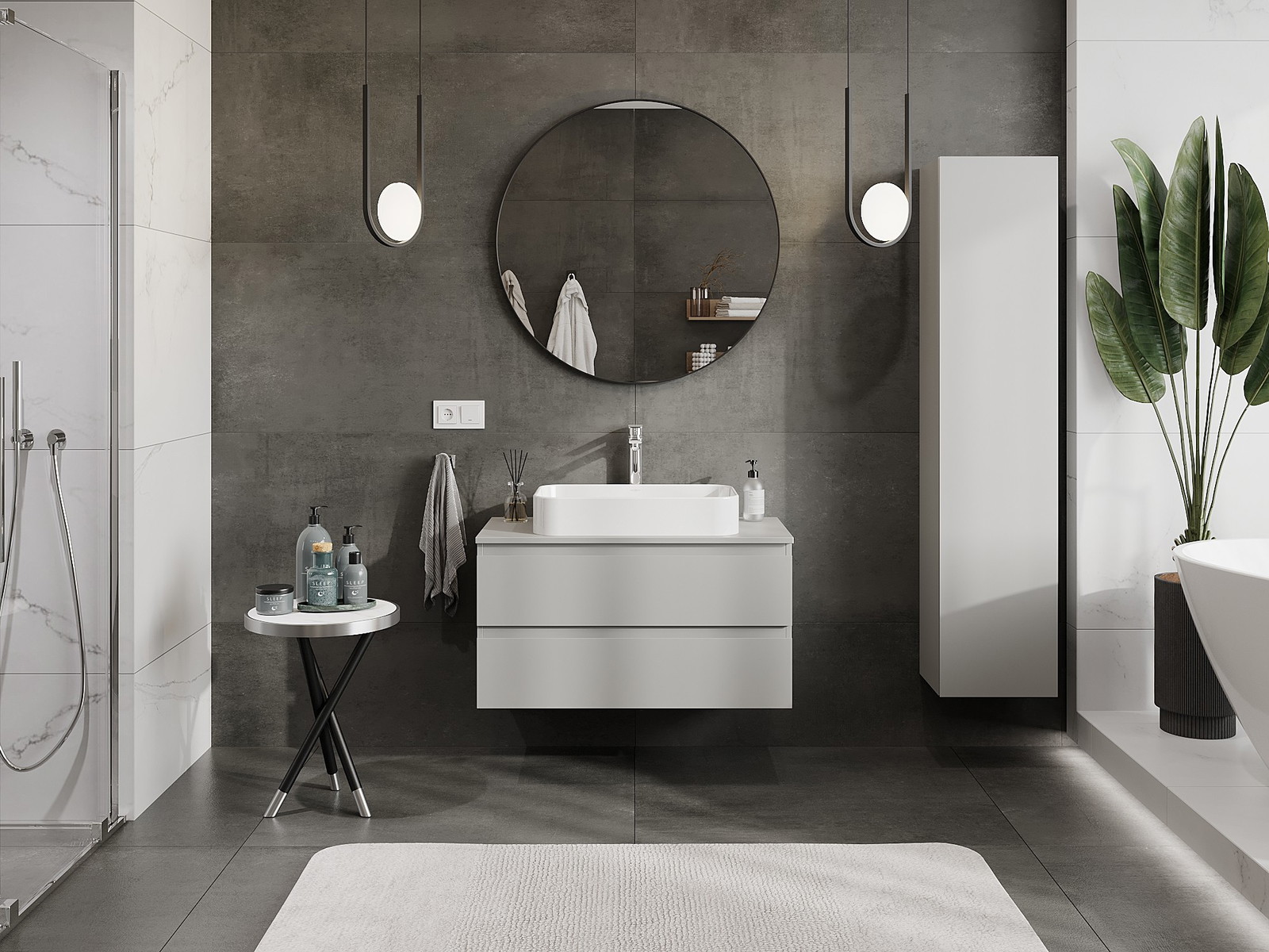 Onze modulaire badkamermeubels kunnen in verschillende kleurconfiguraties met elkaar worden gecombineerd, wat volledige personalisatie mogelijk maakt. Zowel het uiterlijk als de functies van de afzonderlijke elementen kunnen worden gekozen, waardoor de meubels kunnen worden aangepast aan persoonlijke stijlvoorkeuren en gebruikswensen.