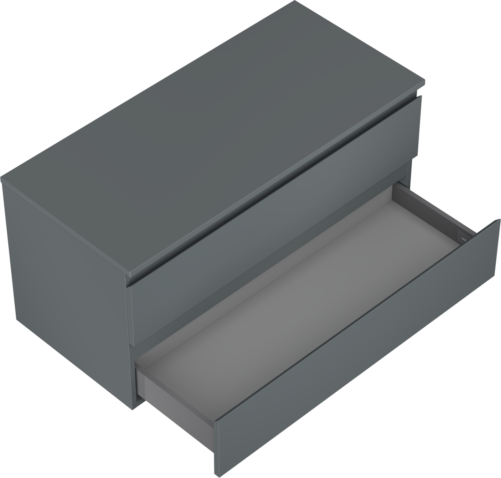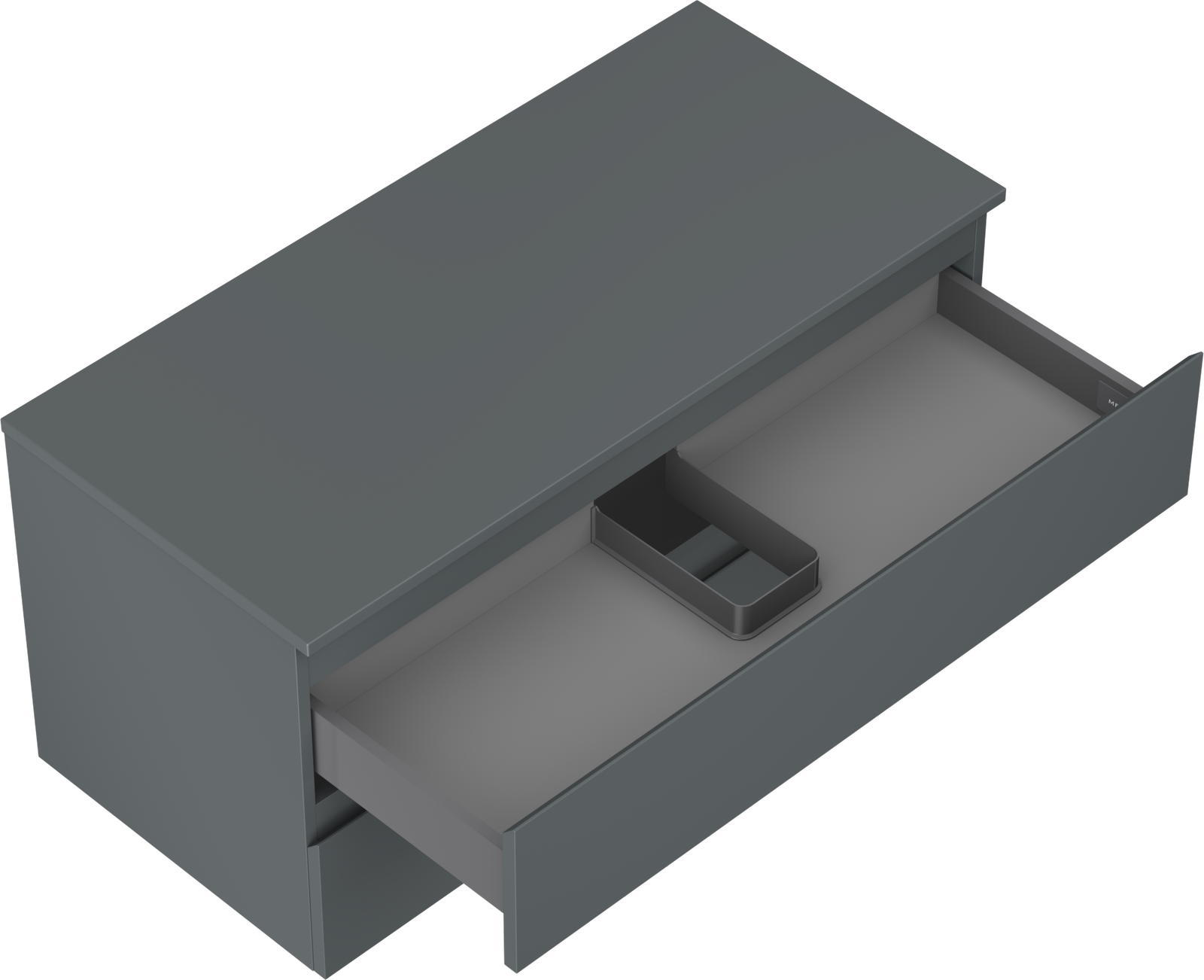 De uitsparing in de lade is zo ontworpen dat het de sifon kan bevatten, die noodzakelijk is in wastafelinstallaties. Hierdoor kan het meubel volledig functioneel worden gemonteerd, zonder dat er ruimte in de lade opgeofferd hoeft te worden voor installatiedoeleinden.