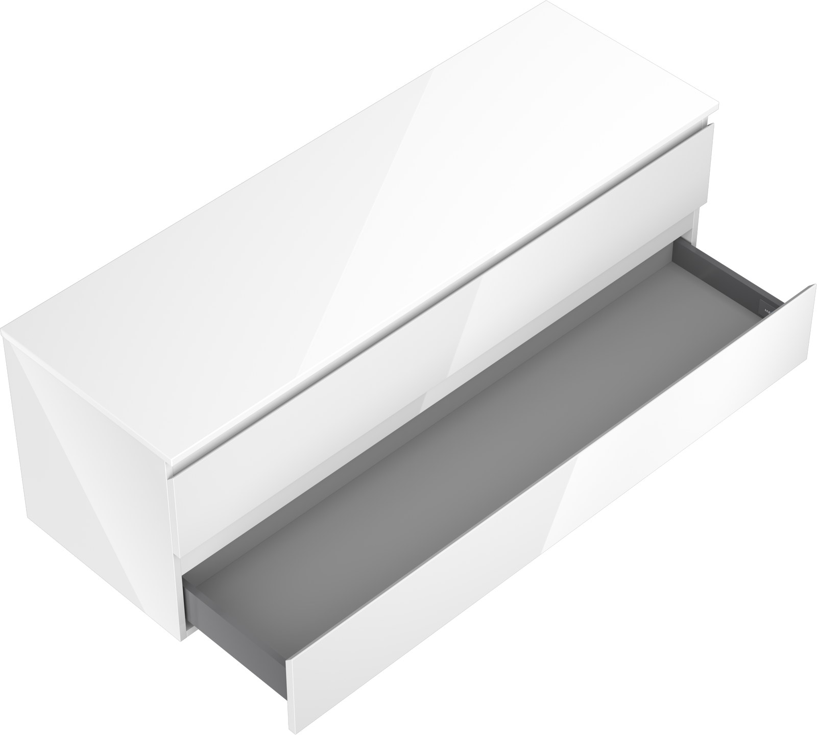 De uitsparing in de lade is zo ontworpen dat het de sifon kan bevatten, die noodzakelijk is in wastafelinstallaties. Hierdoor kan het meubel volledig functioneel worden gemonteerd, zonder dat er ruimte in de lade opgeofferd hoeft te worden voor installatiedoeleinden.