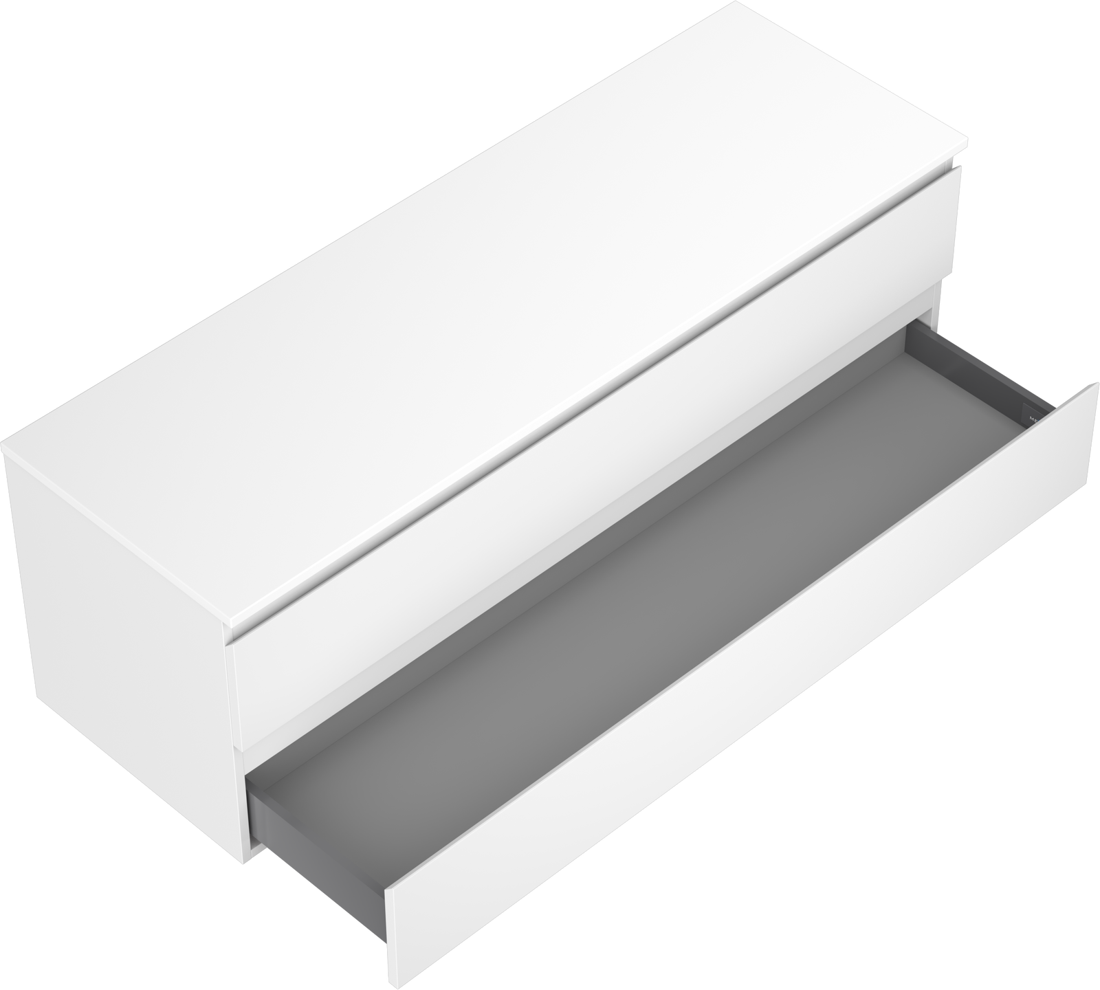 De uitsparing in de lade is zo ontworpen dat het de sifon kan bevatten, die noodzakelijk is in wastafelinstallaties. Hierdoor kan het meubel volledig functioneel worden gemonteerd, zonder dat er ruimte in de lade opgeofferd hoeft te worden voor installatiedoeleinden.
