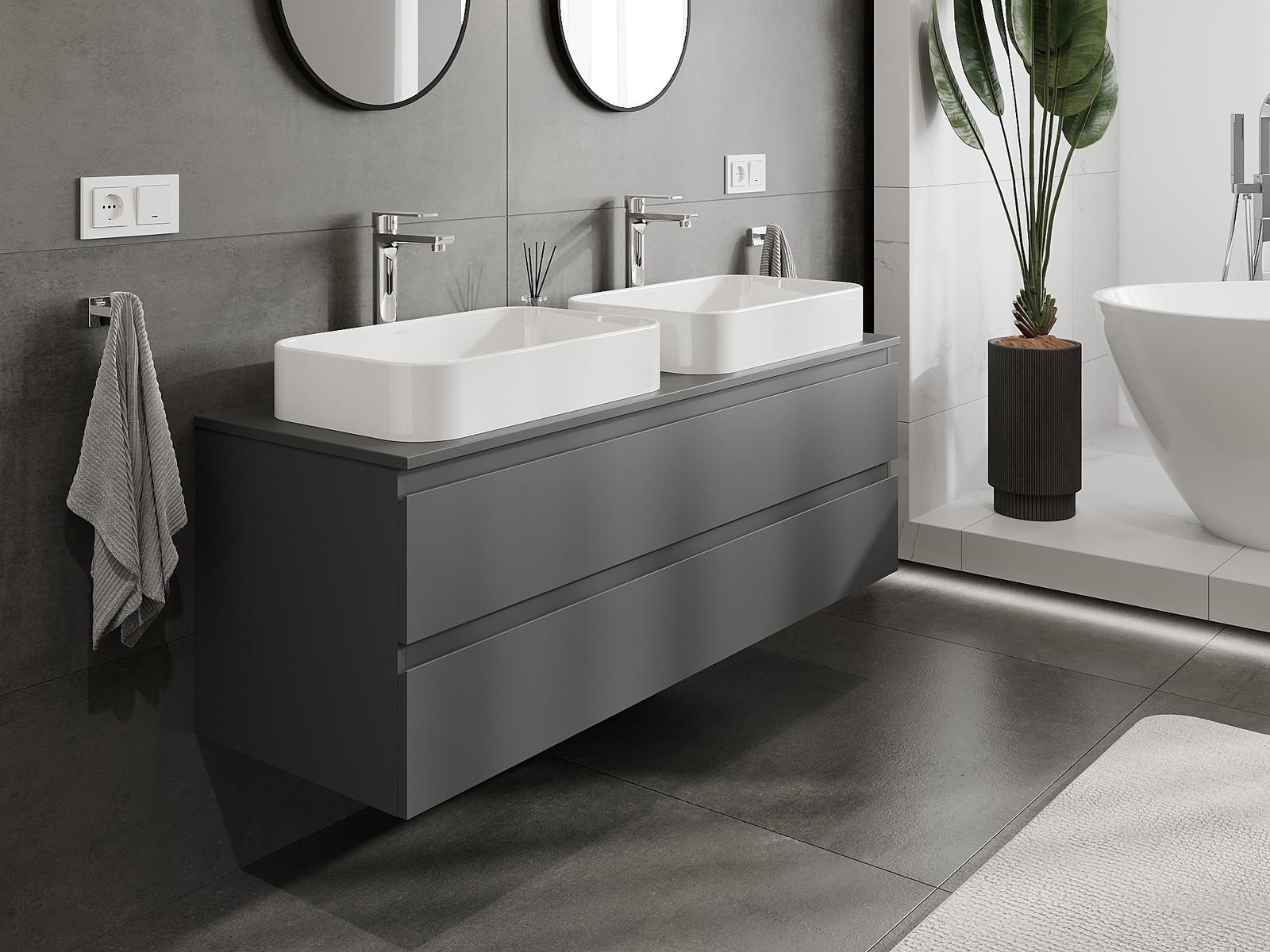 Onze modulaire badkamermeubels kunnen in verschillende kleurconfiguraties met elkaar worden gecombineerd, wat volledige personalisatie mogelijk maakt. Zowel het uiterlijk als de functies van de afzonderlijke elementen kunnen worden gekozen, waardoor de meubels kunnen worden aangepast aan persoonlijke stijlvoorkeuren en gebruikswensen.