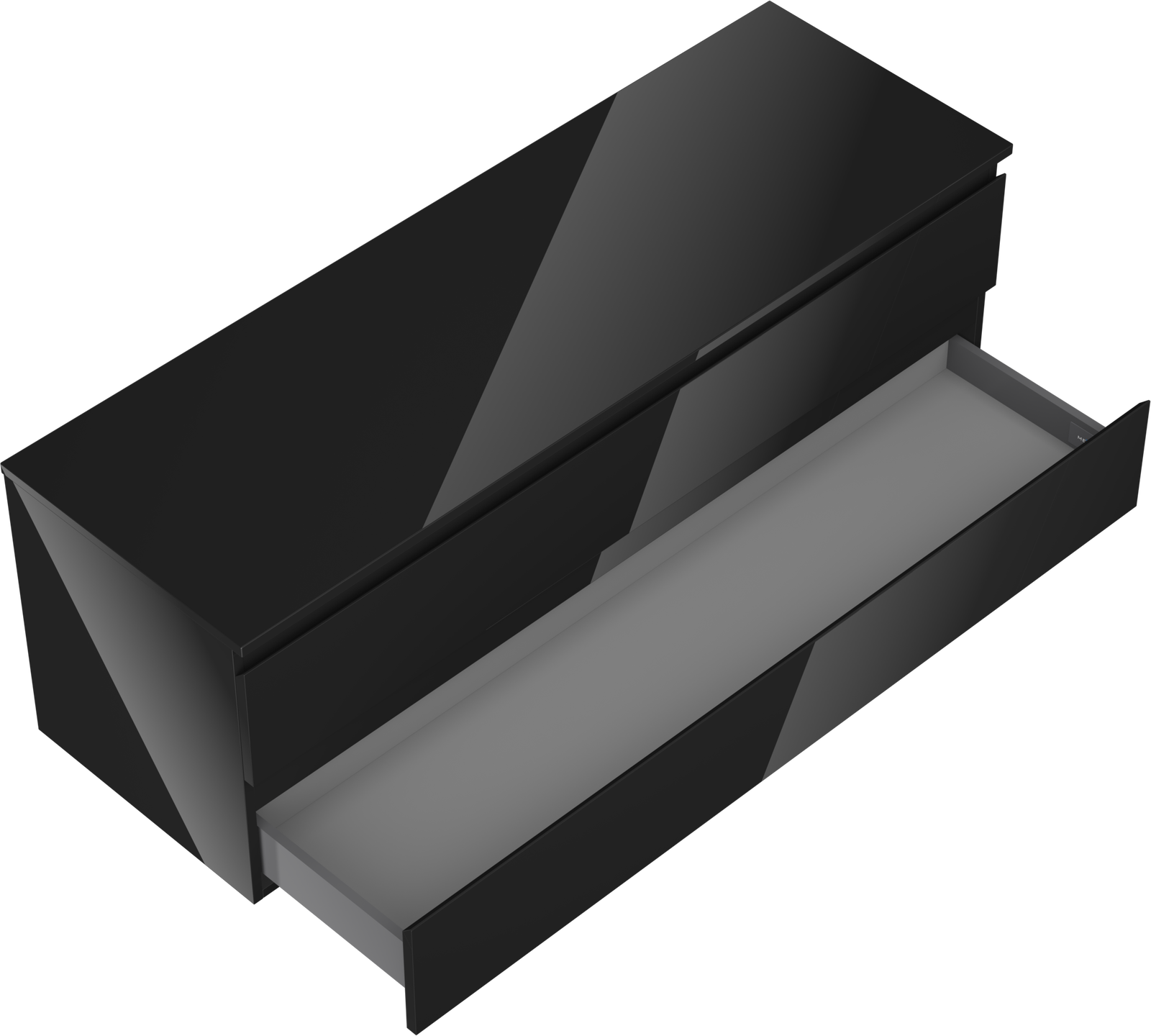De uitsparing in de lade is zo ontworpen dat het de sifon kan bevatten, die noodzakelijk is in wastafelinstallaties. Hierdoor kan het meubel volledig functioneel worden gemonteerd, zonder dat er ruimte in de lade opgeofferd hoeft te worden voor installatiedoeleinden.