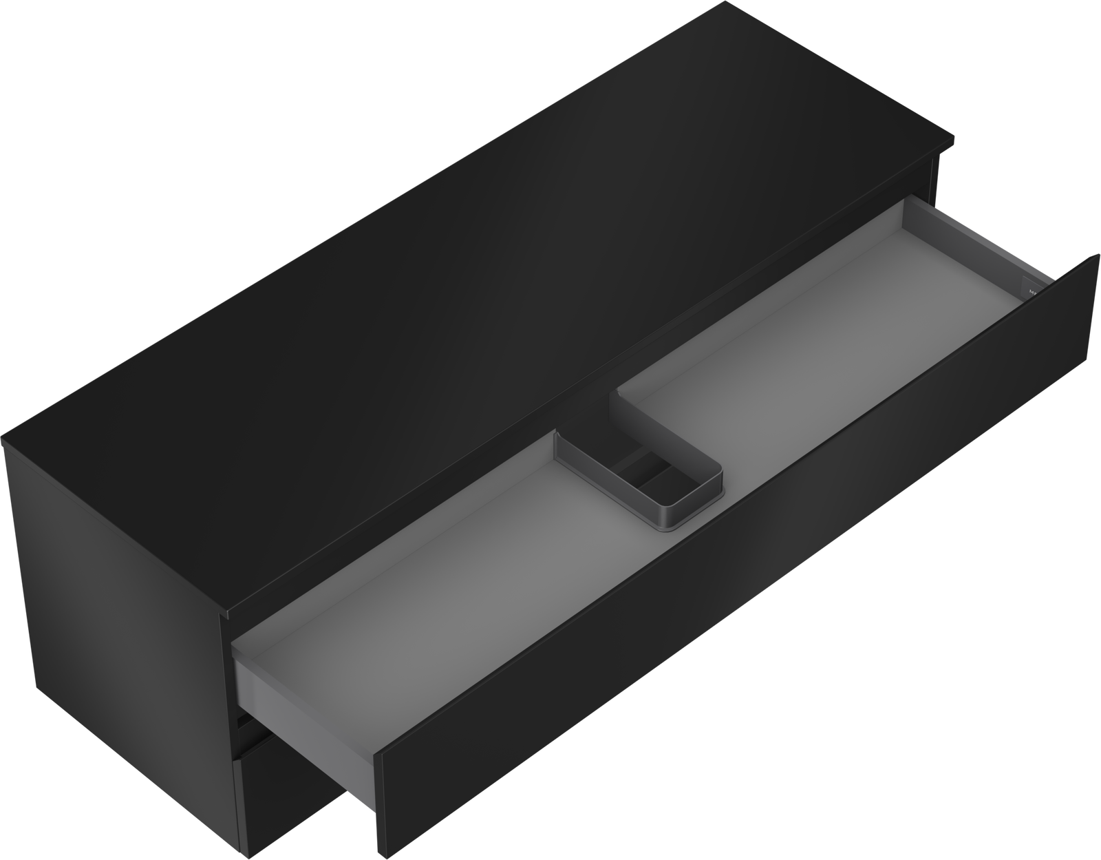 De uitsparing in de lade is zo ontworpen dat het de sifon kan bevatten, die noodzakelijk is in wastafelinstallaties. Hierdoor kan het meubel volledig functioneel worden gemonteerd, zonder dat er ruimte in de lade opgeofferd hoeft te worden voor installatiedoeleinden.