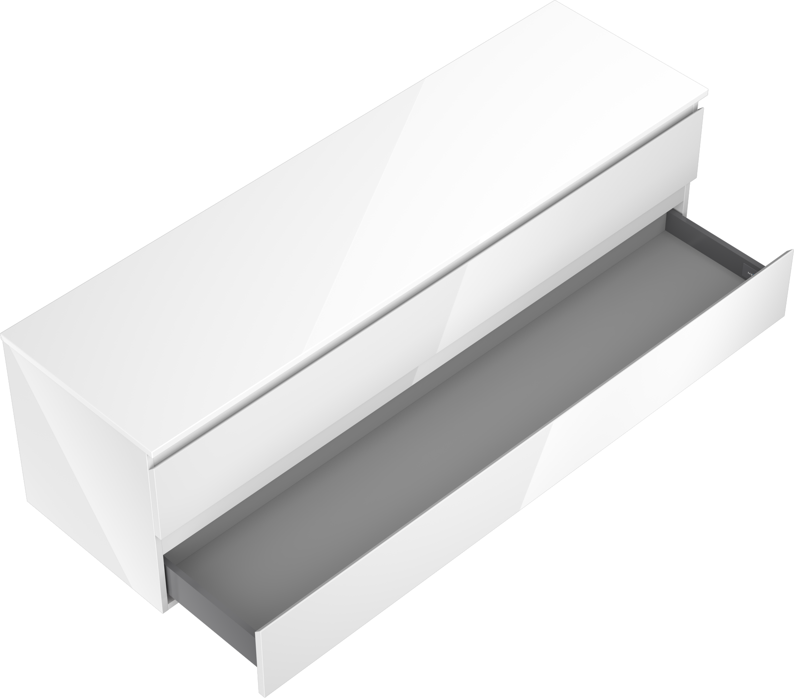 De uitsparing in de lade is zo ontworpen dat het de sifon kan bevatten, die noodzakelijk is in wastafelinstallaties. Hierdoor kan het meubel volledig functioneel worden gemonteerd, zonder dat er ruimte in de lade opgeofferd hoeft te worden voor installatiedoeleinden.