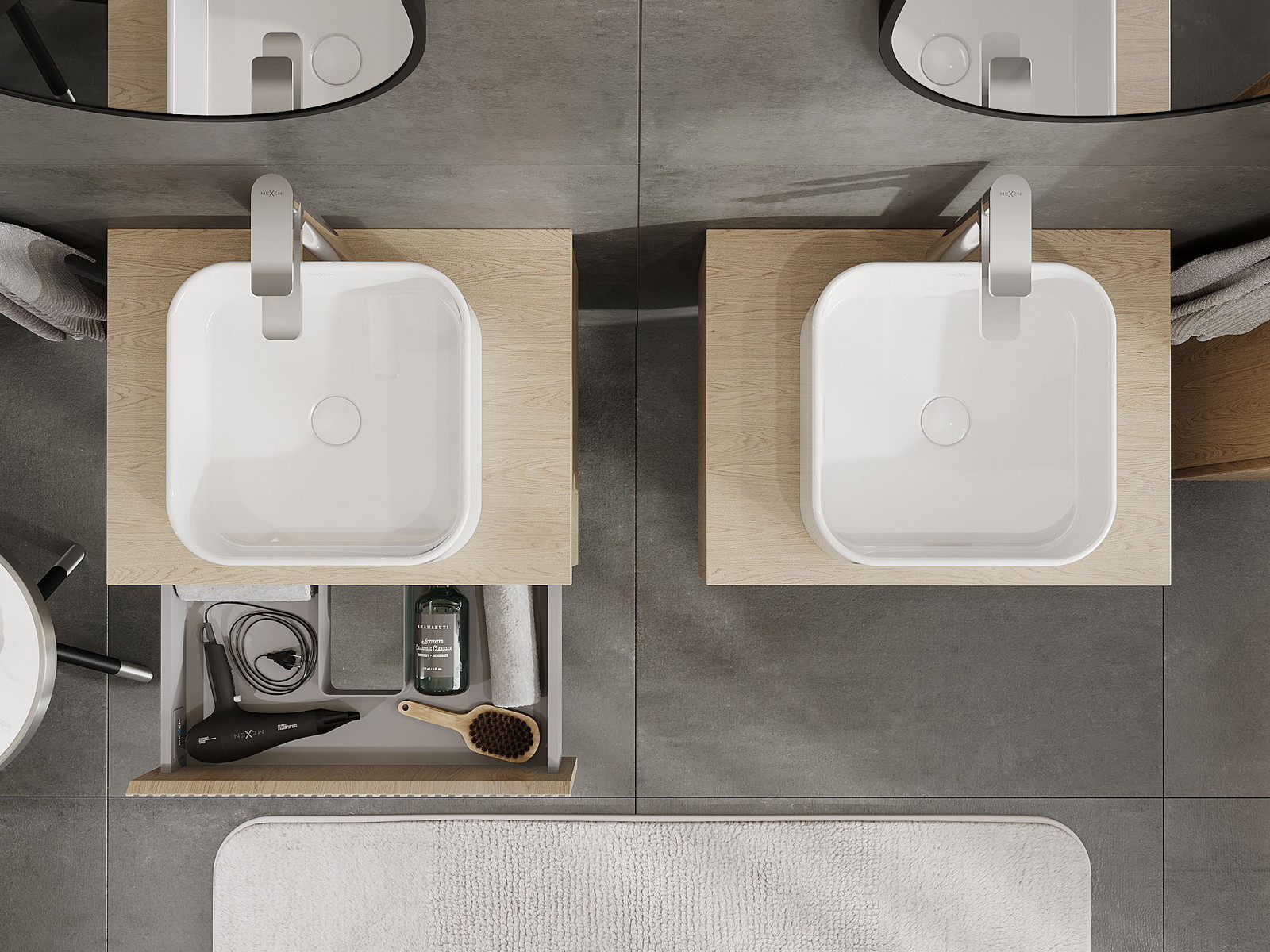 Onze modulaire badkamermeubels kunnen in verschillende kleurconfiguraties met elkaar worden gecombineerd, wat volledige personalisatie mogelijk maakt. Zowel het uiterlijk als de functies van de afzonderlijke elementen kunnen worden gekozen, waardoor de meubels kunnen worden aangepast aan persoonlijke stijlvoorkeuren en gebruikswensen.