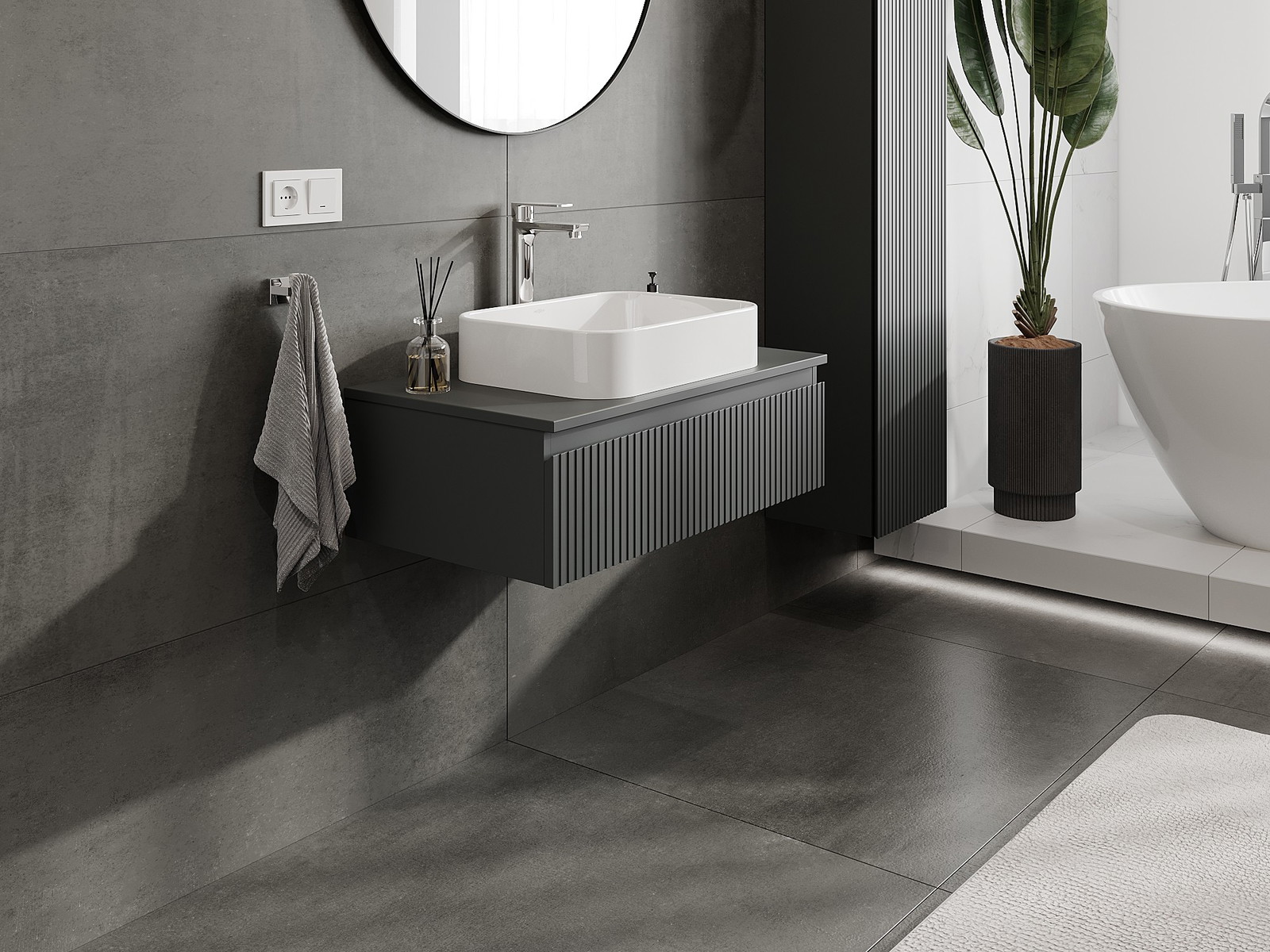 Mexen Rivel badkamerkast onder de wastafel 80 cm met blad, 1 lade, gegroefd, grafiet mat - 91A20-08023-1-BFC66