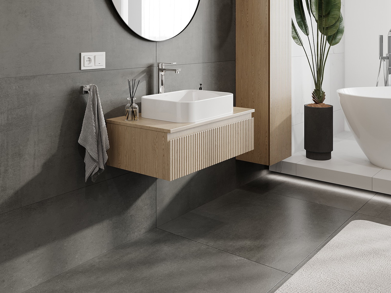 Mexen Rivel badkamerkast onder wastafel 80 cm met blad, 1 lade, geribbeld, eiken - 91A20-08023-1-BFC81