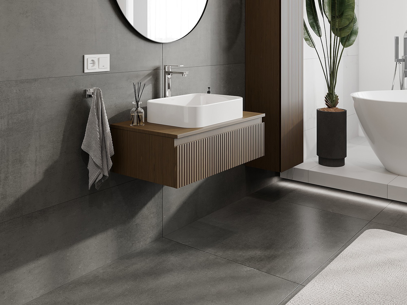 Mexen Rivel badkamerkast onder de wastafel 80 cm met blad, 1 lade, gegroefd, walnoot - 91A20-08023-1-BFC86
