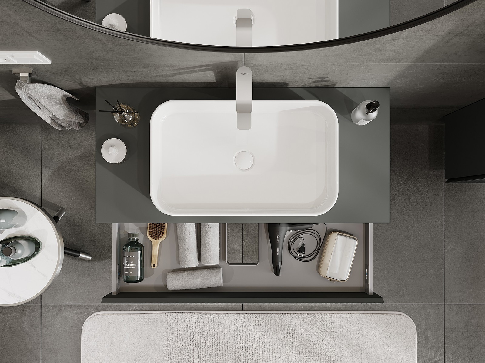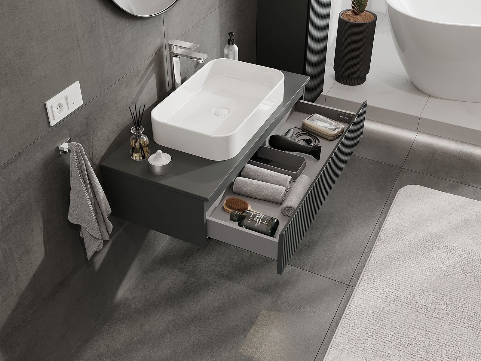 Mexen Rivel badkamermeubel onder de wastafel 100 cm met blad, 1 lade, geribbeld, mat grafiet - 91A20-10023-1-BFC66
