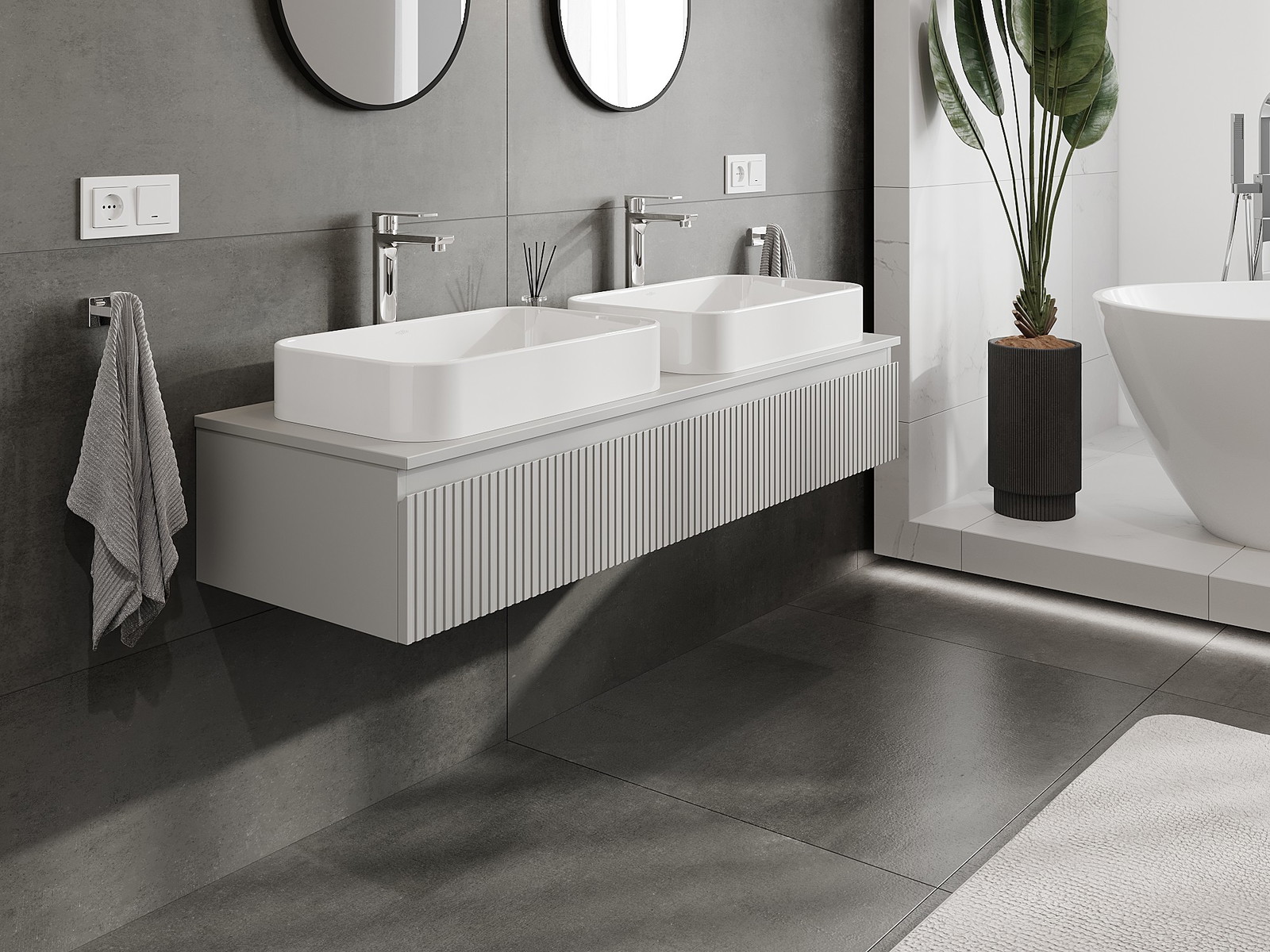 Onze modulaire badkamermeubels kunnen in verschillende kleurconfiguraties met elkaar worden gecombineerd, wat volledige personalisatie mogelijk maakt. Zowel het uiterlijk als de functies van de afzonderlijke elementen kunnen worden gekozen, waardoor de meubels kunnen worden aangepast aan persoonlijke stijlvoorkeuren en gebruikswensen.