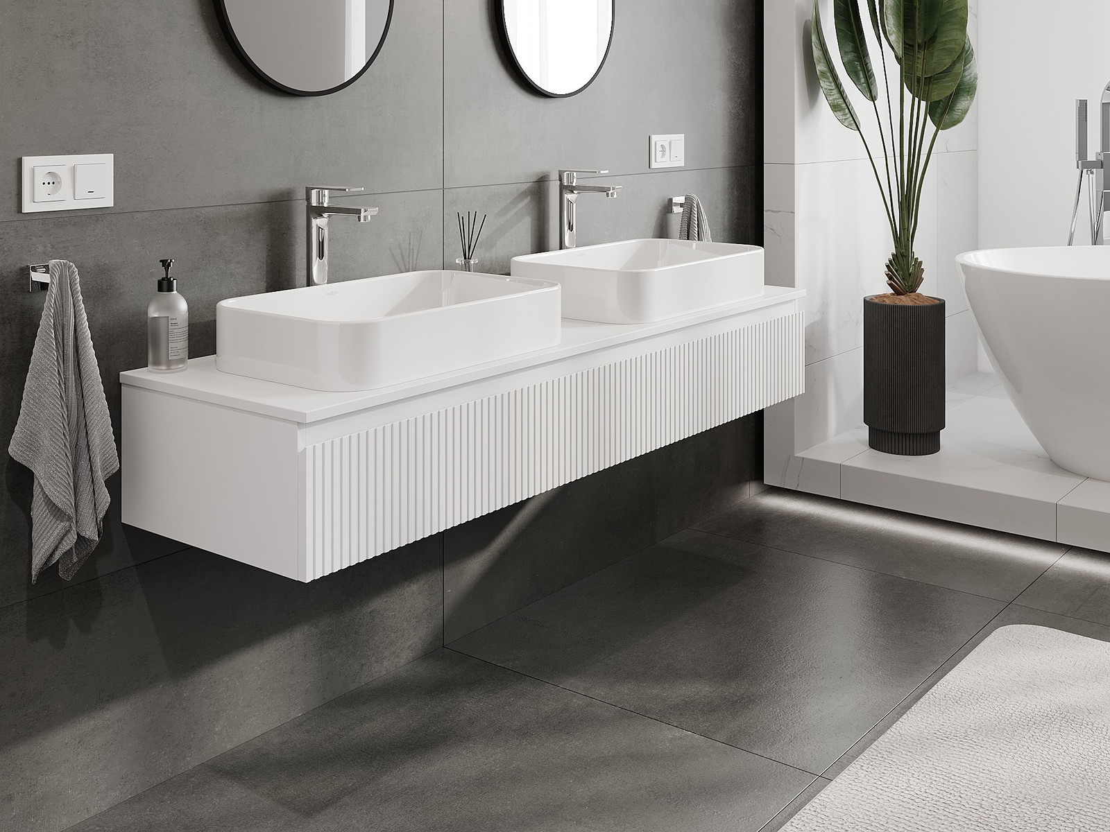 Onze modulaire badkamermeubels kunnen in verschillende kleurconfiguraties met elkaar worden gecombineerd, wat volledige personalisatie mogelijk maakt. Zowel het uiterlijk als de functies van de afzonderlijke elementen kunnen worden gekozen, waardoor de meubels kunnen worden aangepast aan persoonlijke stijlvoorkeuren en gebruikswensen.