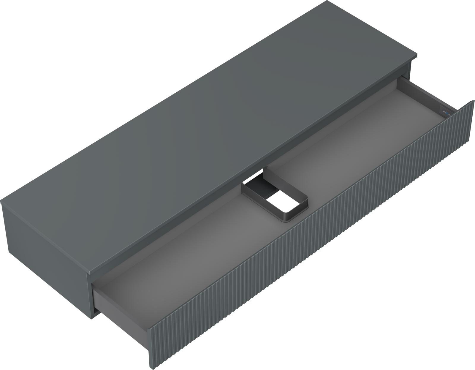 Mexen Rivel badkamerkast onder wastafel 160 cm met blad, 1 lade, geribbeld, mat grafiet - 91A20-16023-1-BFC66