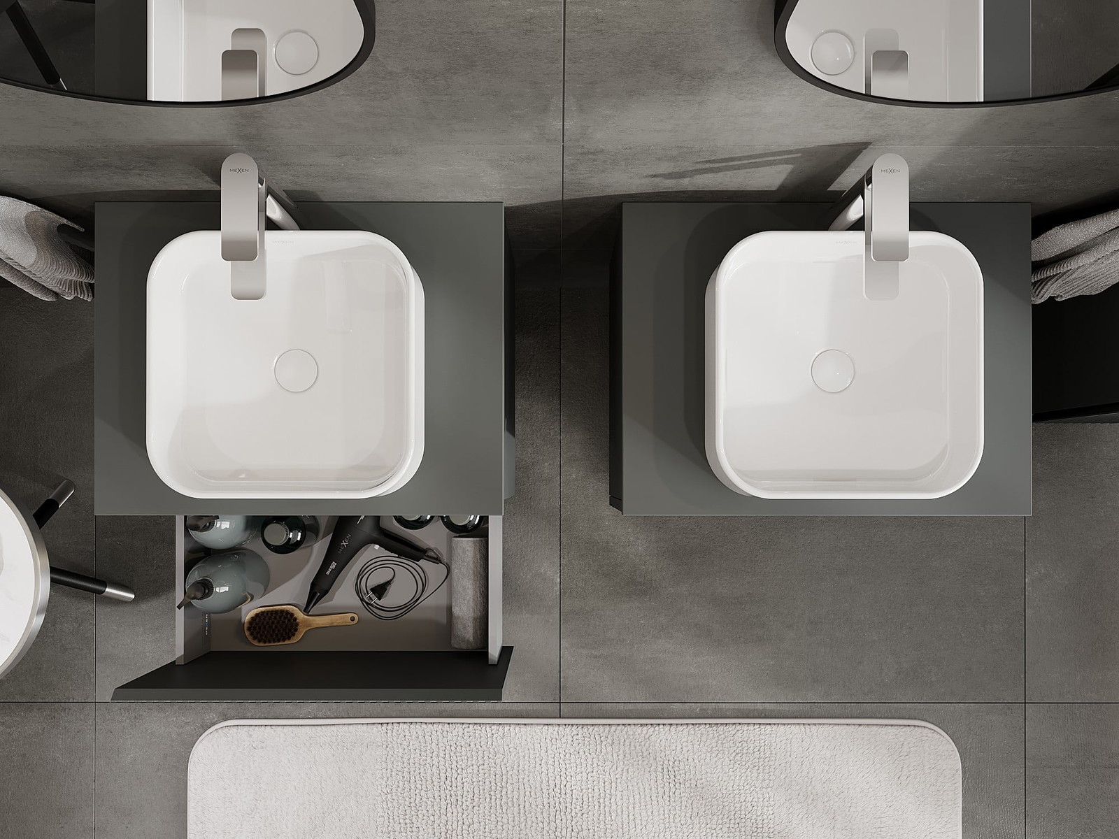 Mexen Rivel badkamerkastje onder de wastafel 60 cm met blad, 1 lade, gegroefd, mat grafiet - 91A20-06047-1-BFC66