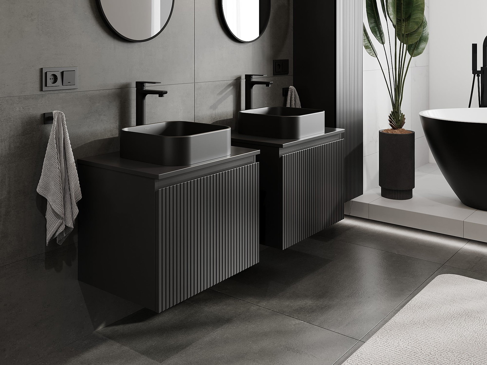 Mexen Rivel badkamerkast onder wastafel 60 cm met blad, 1 lade, gegroefd, zwart mat - 91A20-06047-1-BFC71