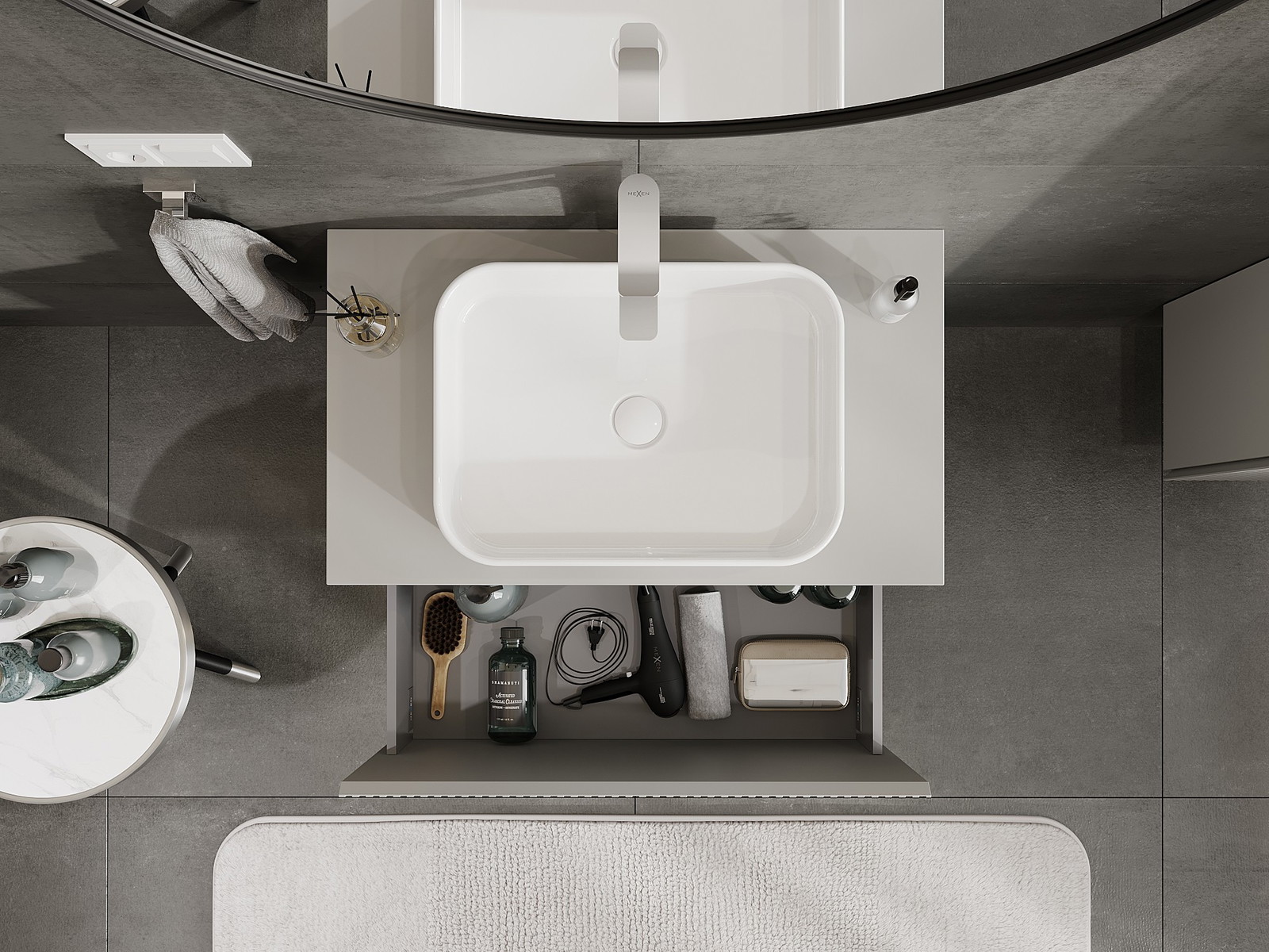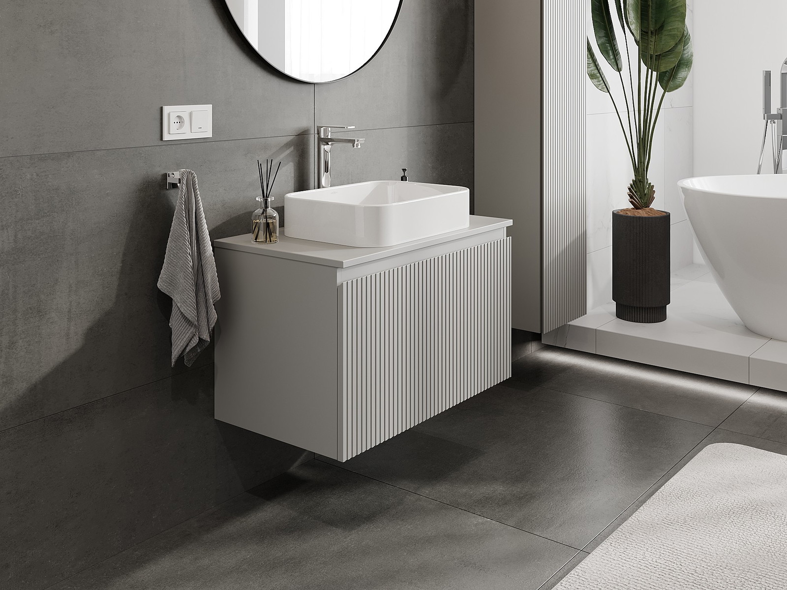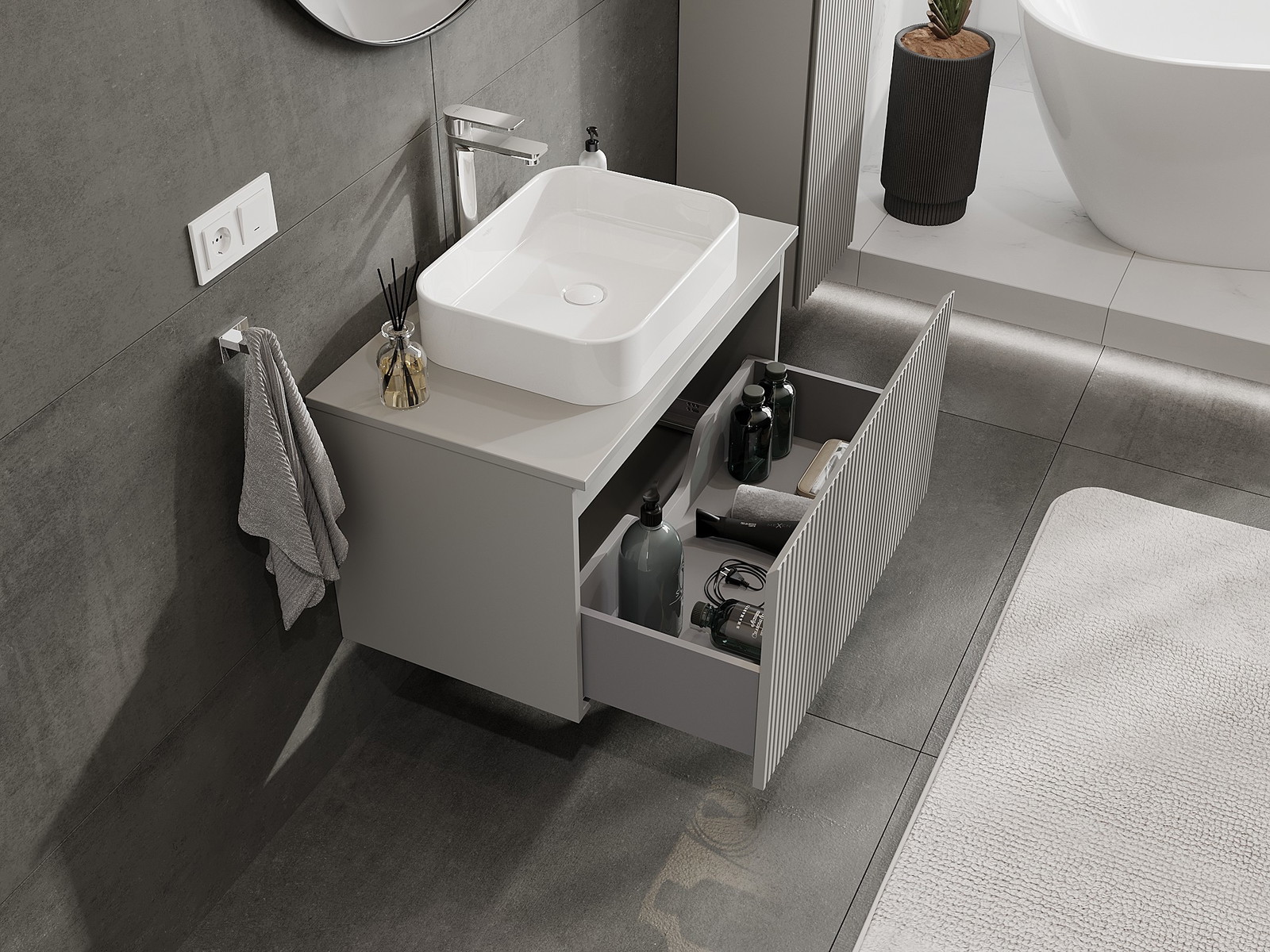 Mexen Rivel badkamerkast onder de wastafel 80 cm met blad, 1 lade, geribbeld, grijs mat - 91A20-08047-1-BFC62