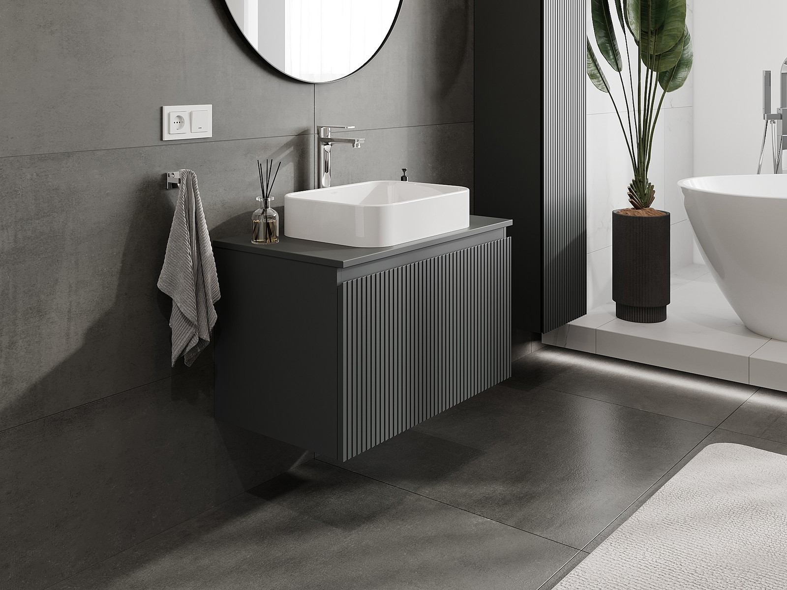Mexen Rivel badkamerkast onder wastafel 80 cm met blad, 1 lade, gegroefd, mat grafiet - 91A20-08047-1-BFC66