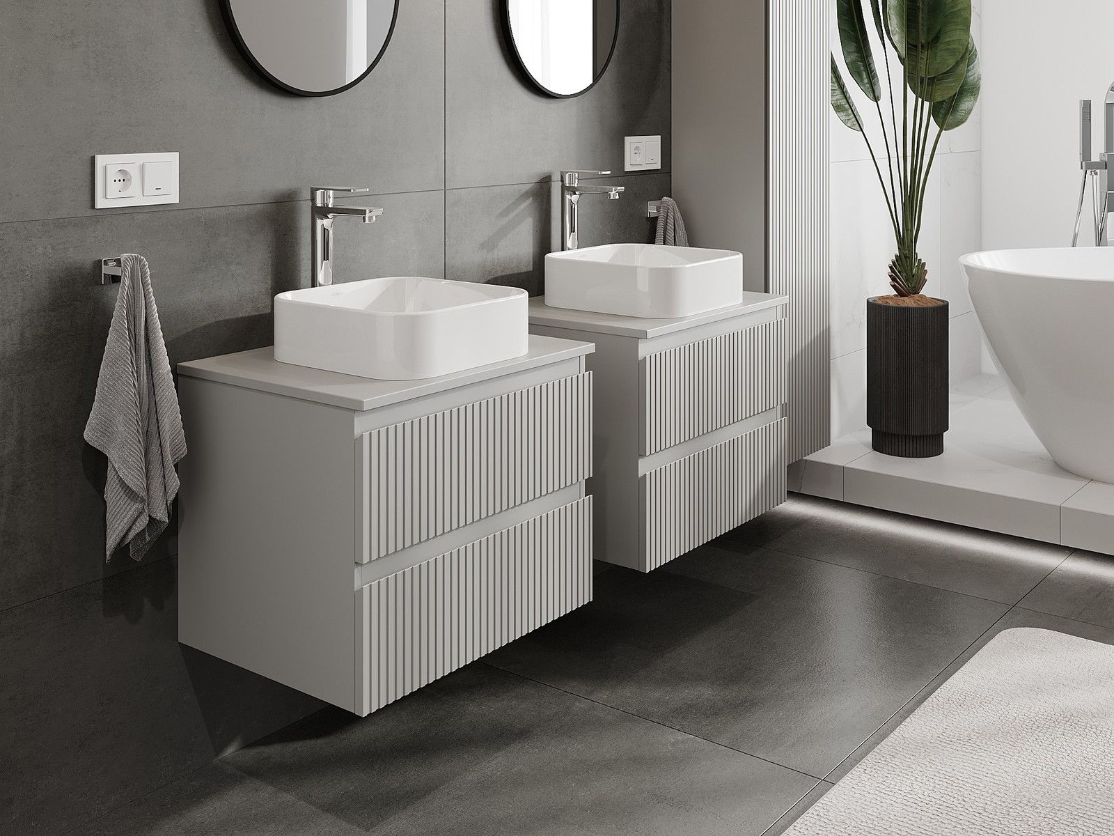 Onze modulaire badkamermeubels kunnen in verschillende kleurconfiguraties met elkaar worden gecombineerd, wat volledige personalisatie mogelijk maakt. Zowel het uiterlijk als de functies van de afzonderlijke elementen kunnen worden gekozen, waardoor de meubels kunnen worden aangepast aan persoonlijke stijlvoorkeuren en gebruikswensen.