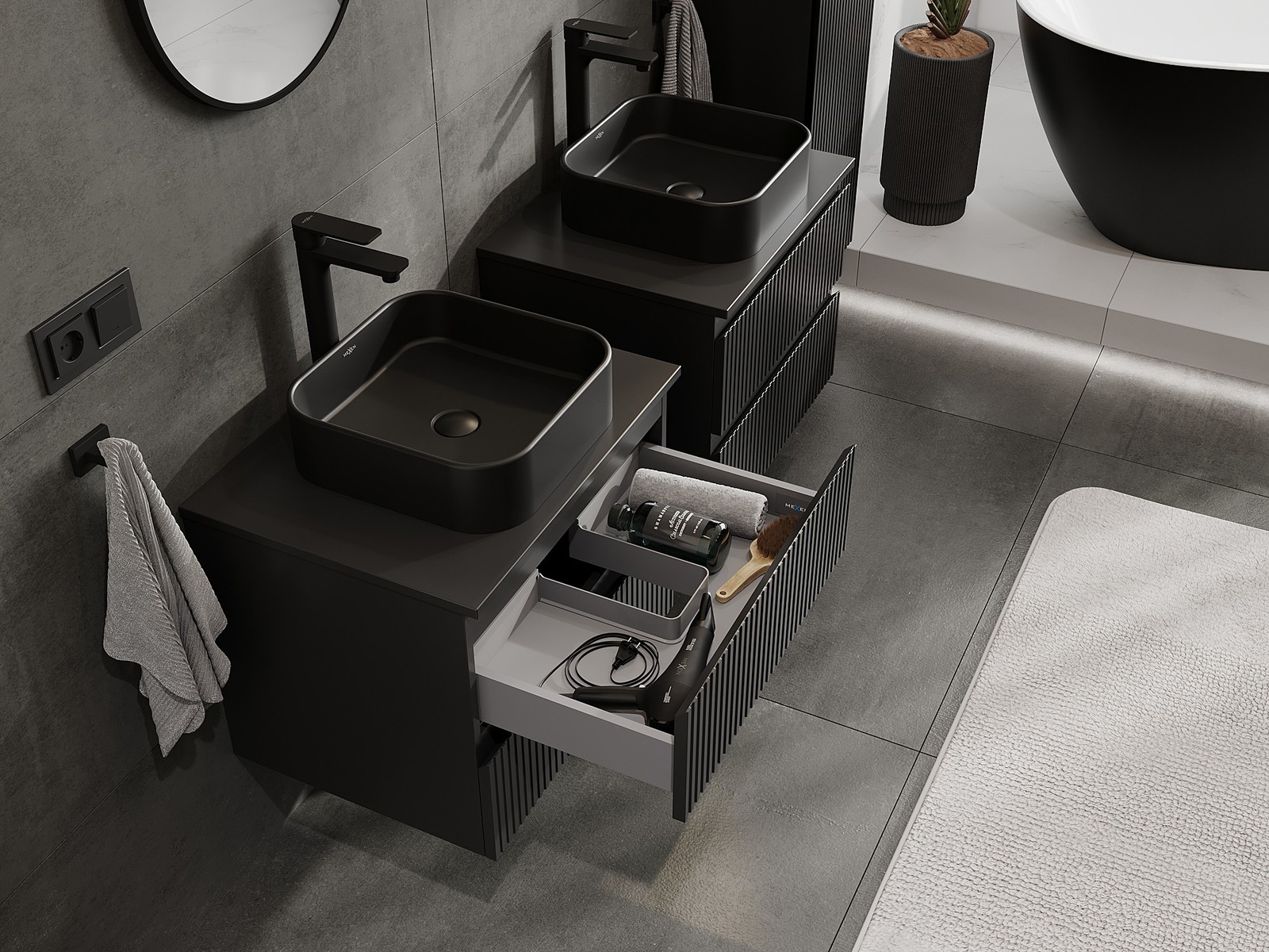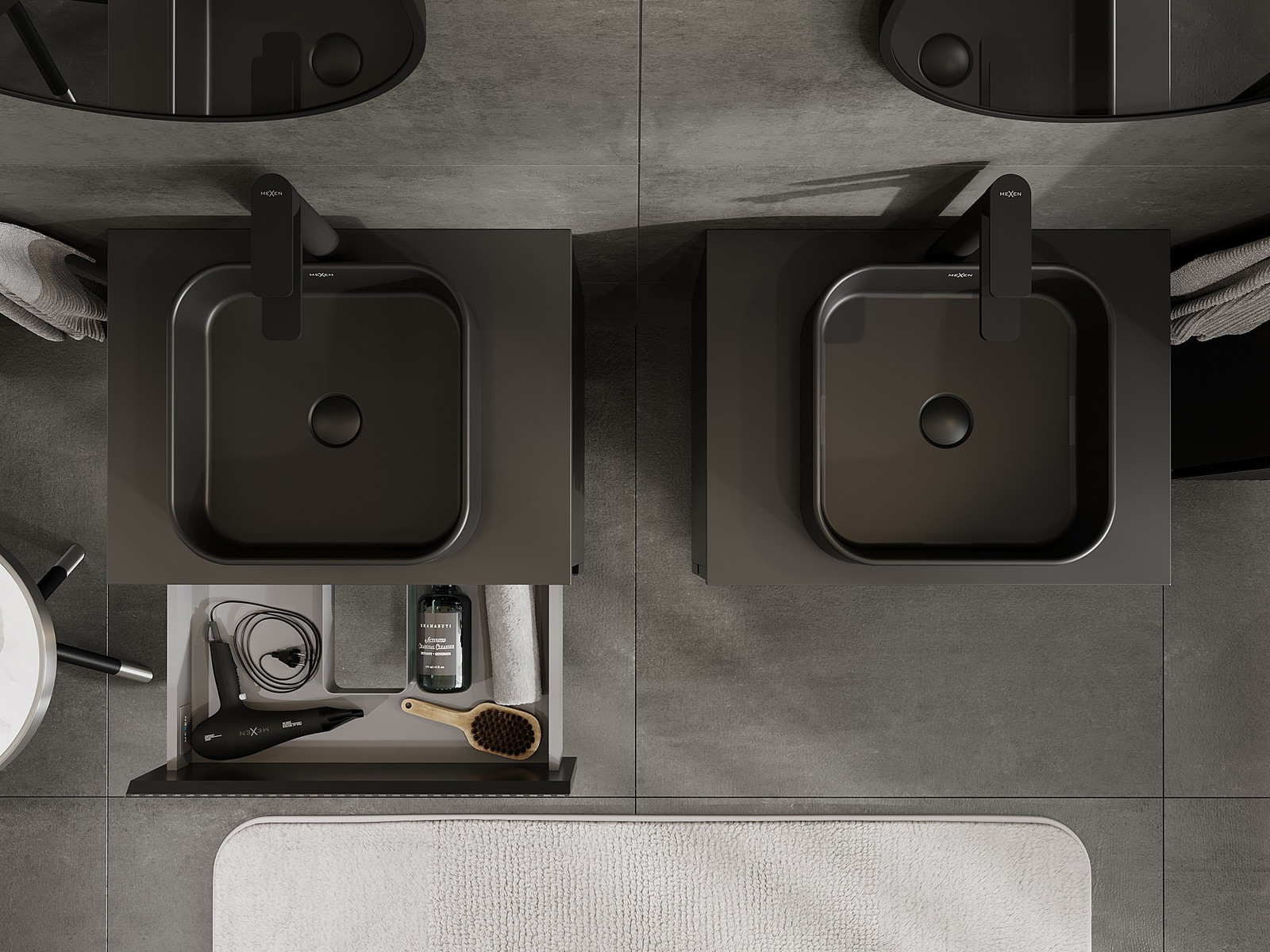 Onze modulaire badkamermeubels kunnen in verschillende kleurconfiguraties met elkaar worden gecombineerd, wat volledige personalisatie mogelijk maakt. Zowel het uiterlijk als de functies van de afzonderlijke elementen kunnen worden gekozen, waardoor de meubels kunnen worden aangepast aan persoonlijke stijlvoorkeuren en gebruikswensen.