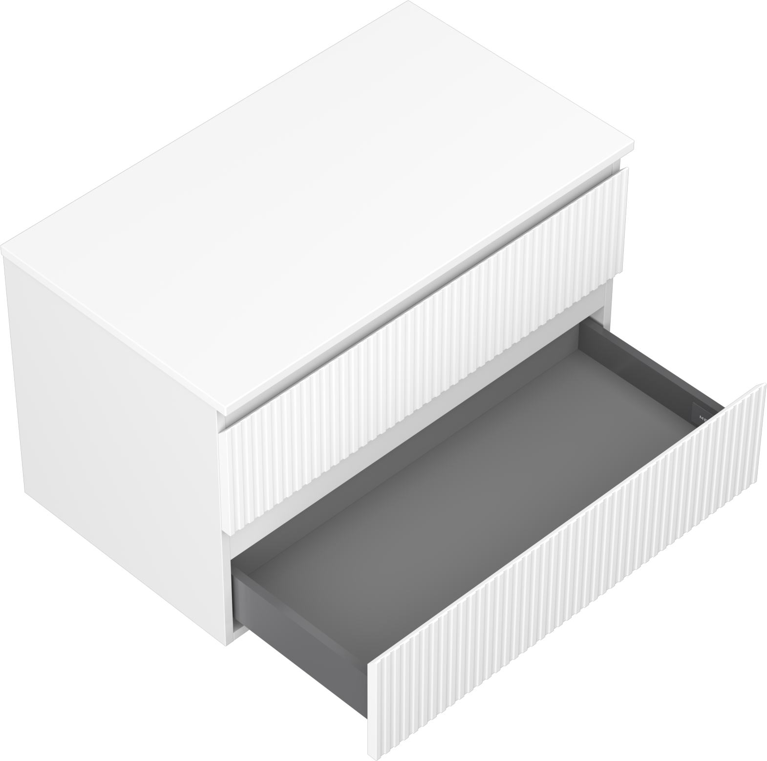 Mexen Rivel badkamerkast onder wastafel 80 cm met blad, 2 laden, geprofileerd, wit mat - 91A20-08047-2-BFFC01