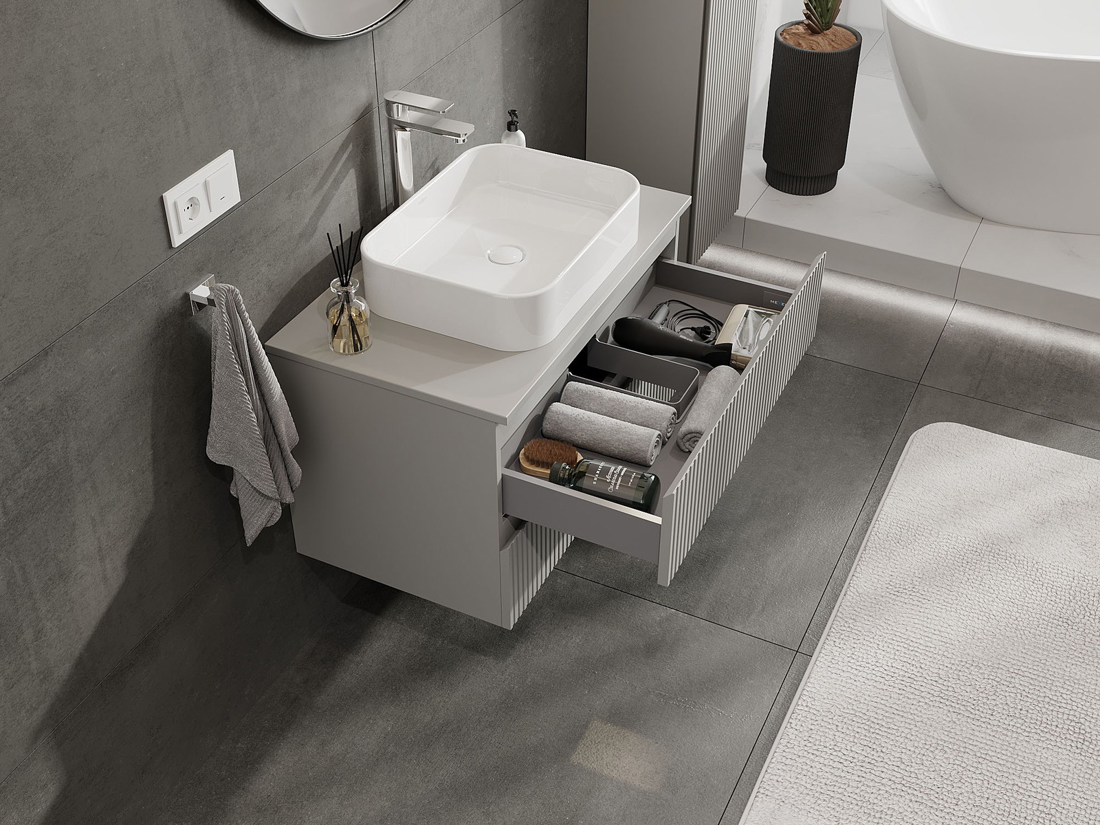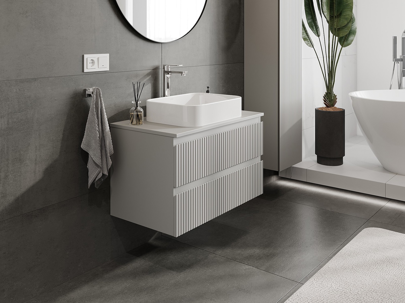 Onze modulaire badkamermeubels kunnen in verschillende kleurconfiguraties met elkaar worden gecombineerd, wat volledige personalisatie mogelijk maakt. Zowel het uiterlijk als de functies van de afzonderlijke elementen kunnen worden gekozen, waardoor de meubels kunnen worden aangepast aan persoonlijke stijlvoorkeuren en gebruikswensen.