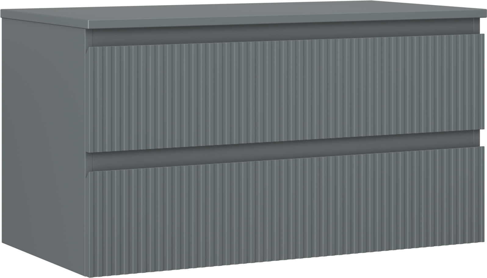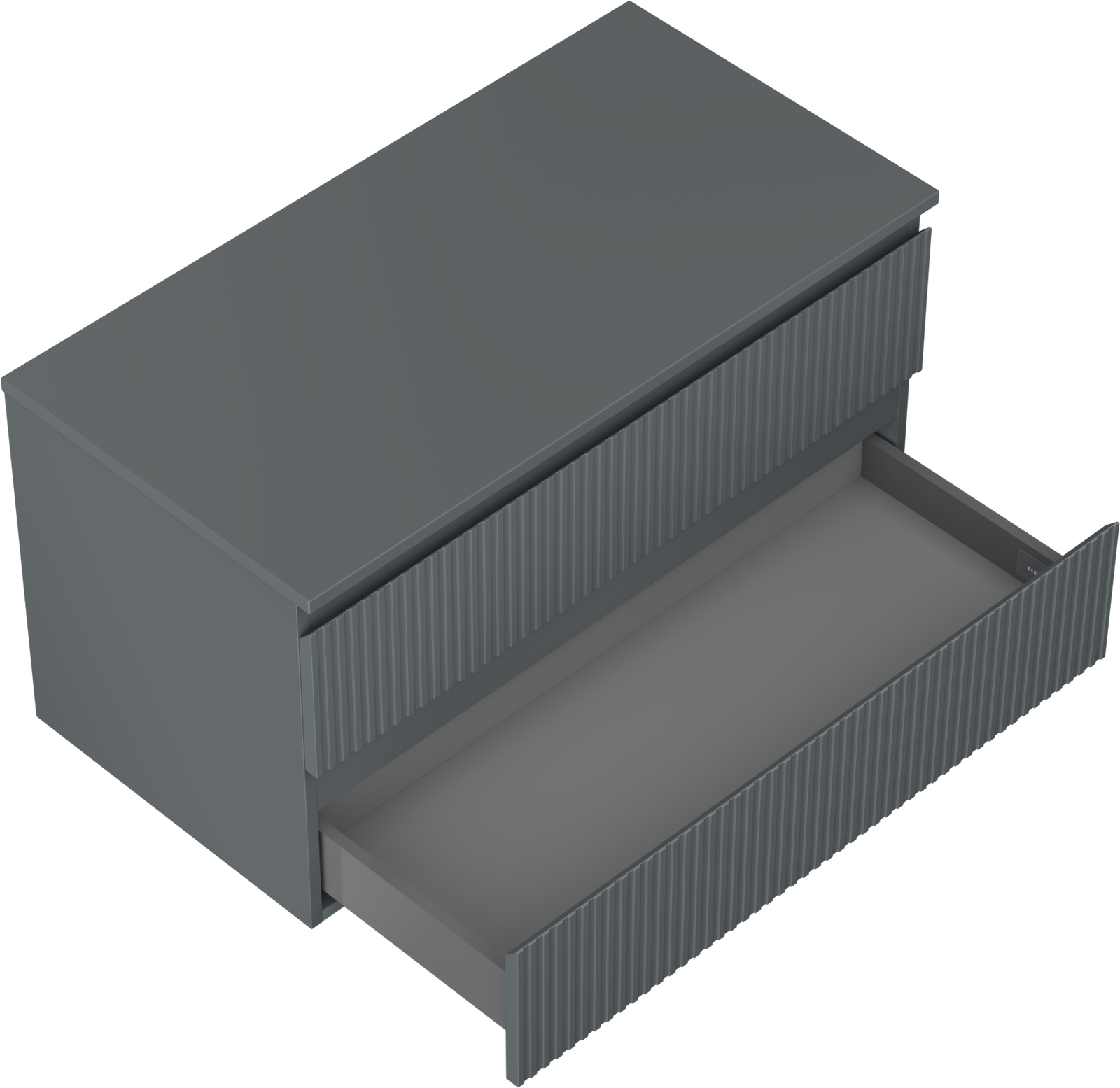 Mexen Rivel badkamerkastje onder wastafel 90 cm met blad, 2 laden, gegroefd, grafiet mat - 91A20-09047-2-BFFC66