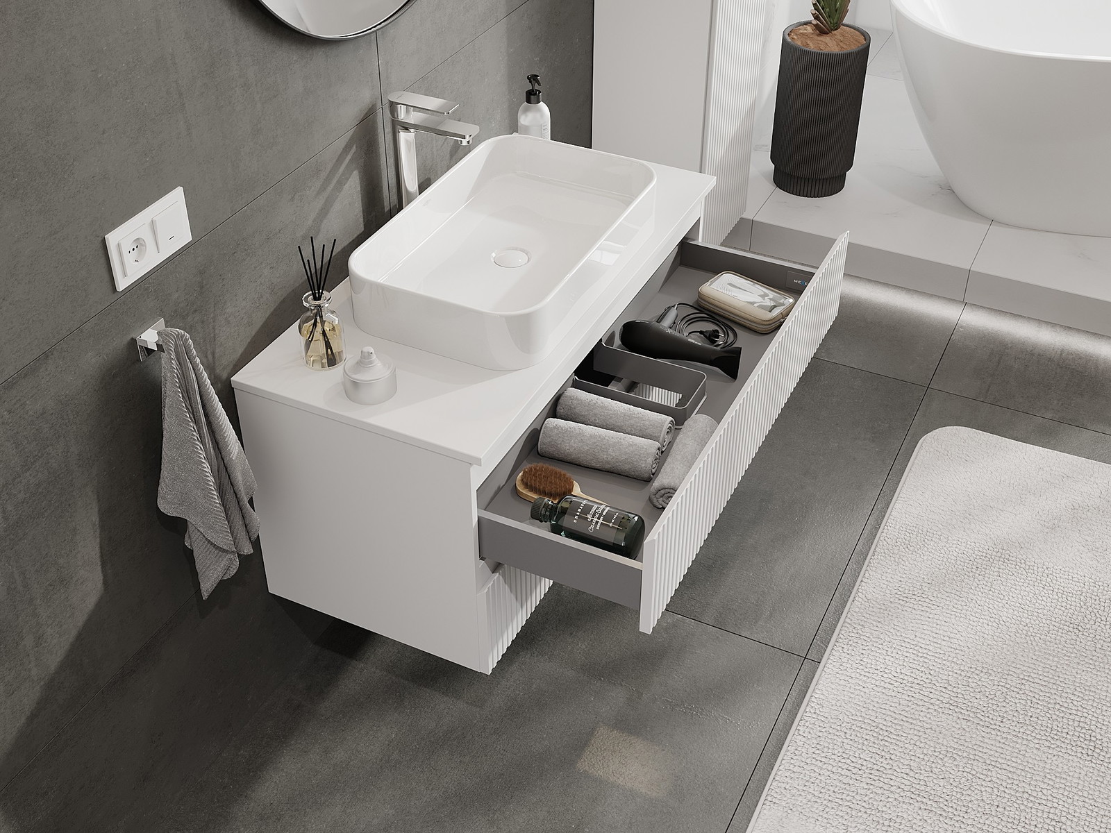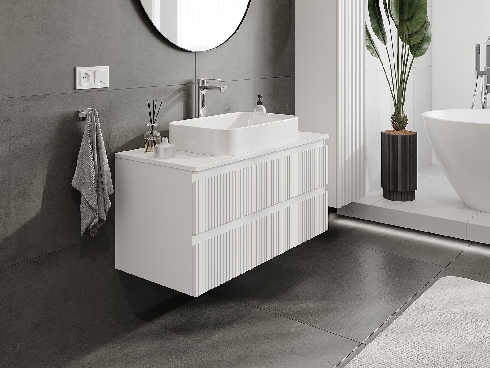 Onze modulaire badkamermeubels kunnen in verschillende kleurconfiguraties met elkaar worden gecombineerd, wat volledige personalisatie mogelijk maakt. Zowel het uiterlijk als de functies van de afzonderlijke elementen kunnen worden gekozen, waardoor de meubels kunnen worden aangepast aan persoonlijke stijlvoorkeuren en gebruikswensen.