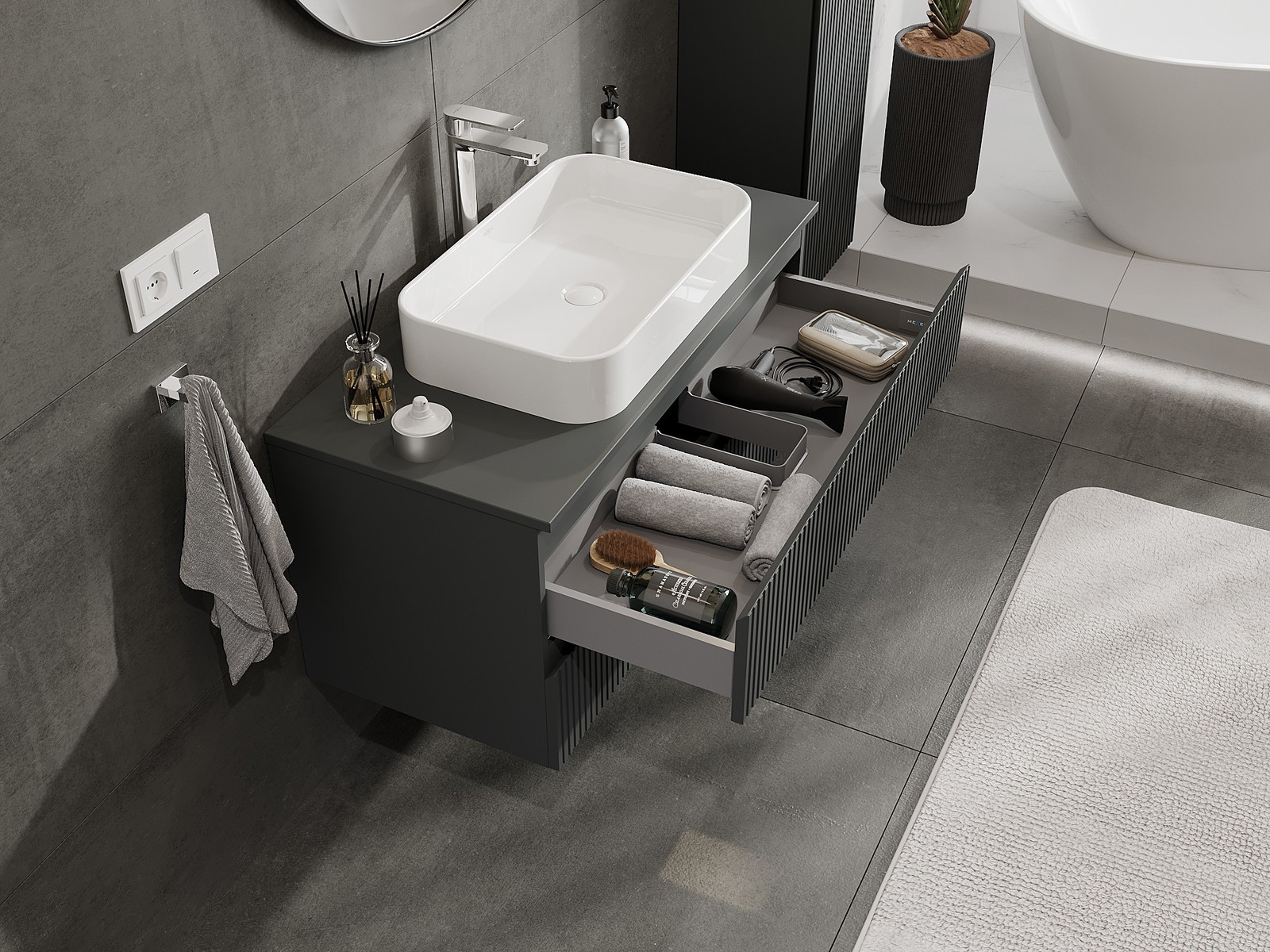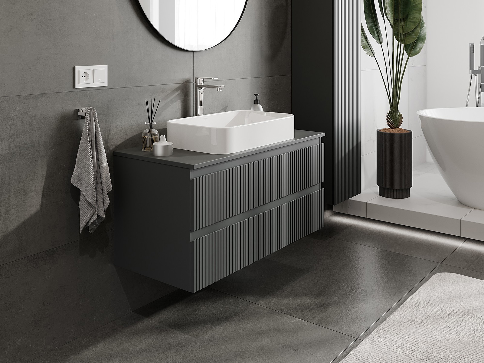 Onze modulaire badkamermeubels kunnen in verschillende kleurconfiguraties met elkaar worden gecombineerd, wat volledige personalisatie mogelijk maakt. Zowel het uiterlijk als de functies van de afzonderlijke elementen kunnen worden gekozen, waardoor de meubels kunnen worden aangepast aan persoonlijke stijlvoorkeuren en gebruikswensen.