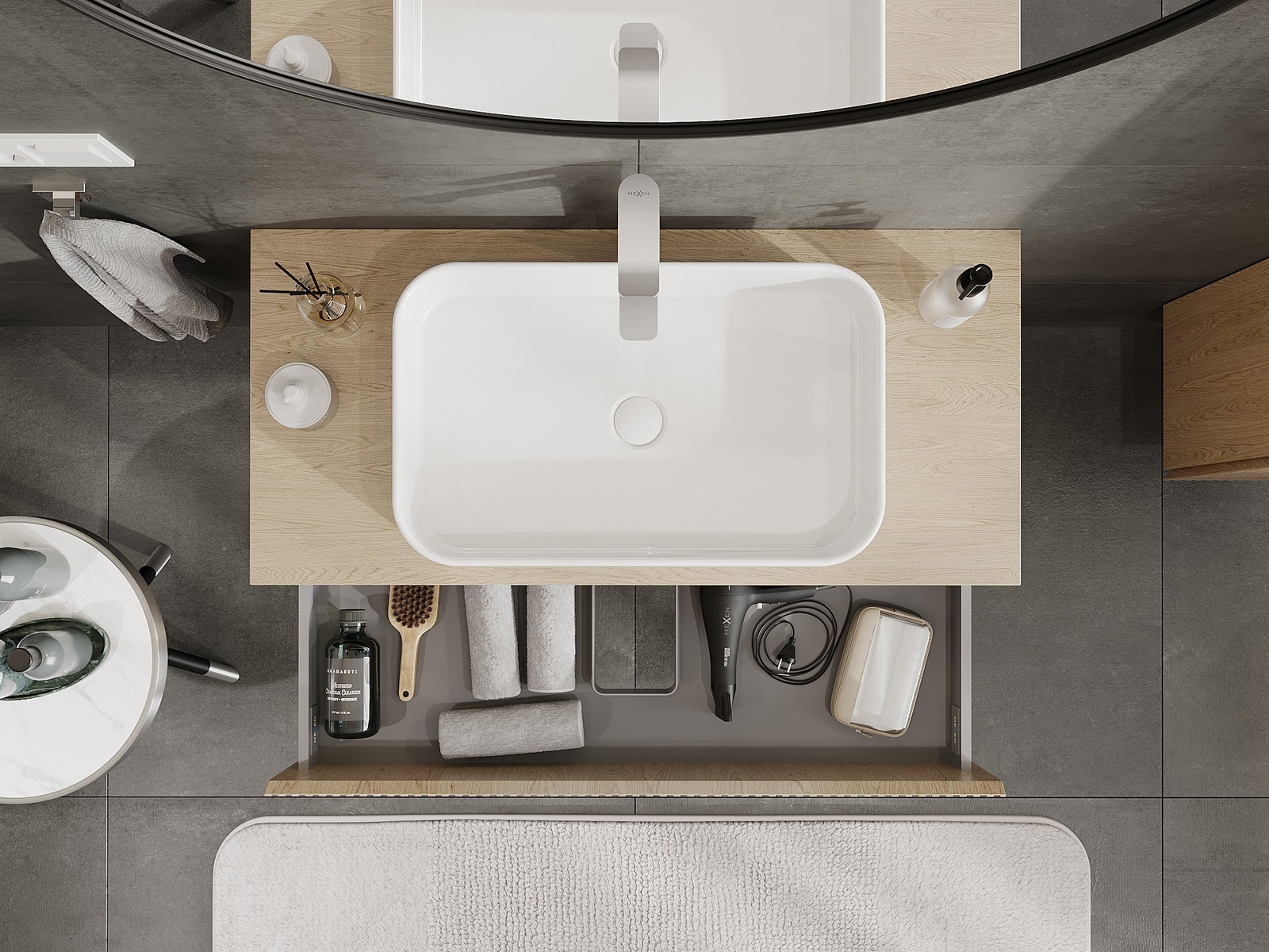 Onze modulaire badkamermeubels kunnen in verschillende kleurconfiguraties met elkaar worden gecombineerd, wat volledige personalisatie mogelijk maakt. Zowel het uiterlijk als de functies van de afzonderlijke elementen kunnen worden gekozen, waardoor de meubels kunnen worden aangepast aan persoonlijke stijlvoorkeuren en gebruikswensen.