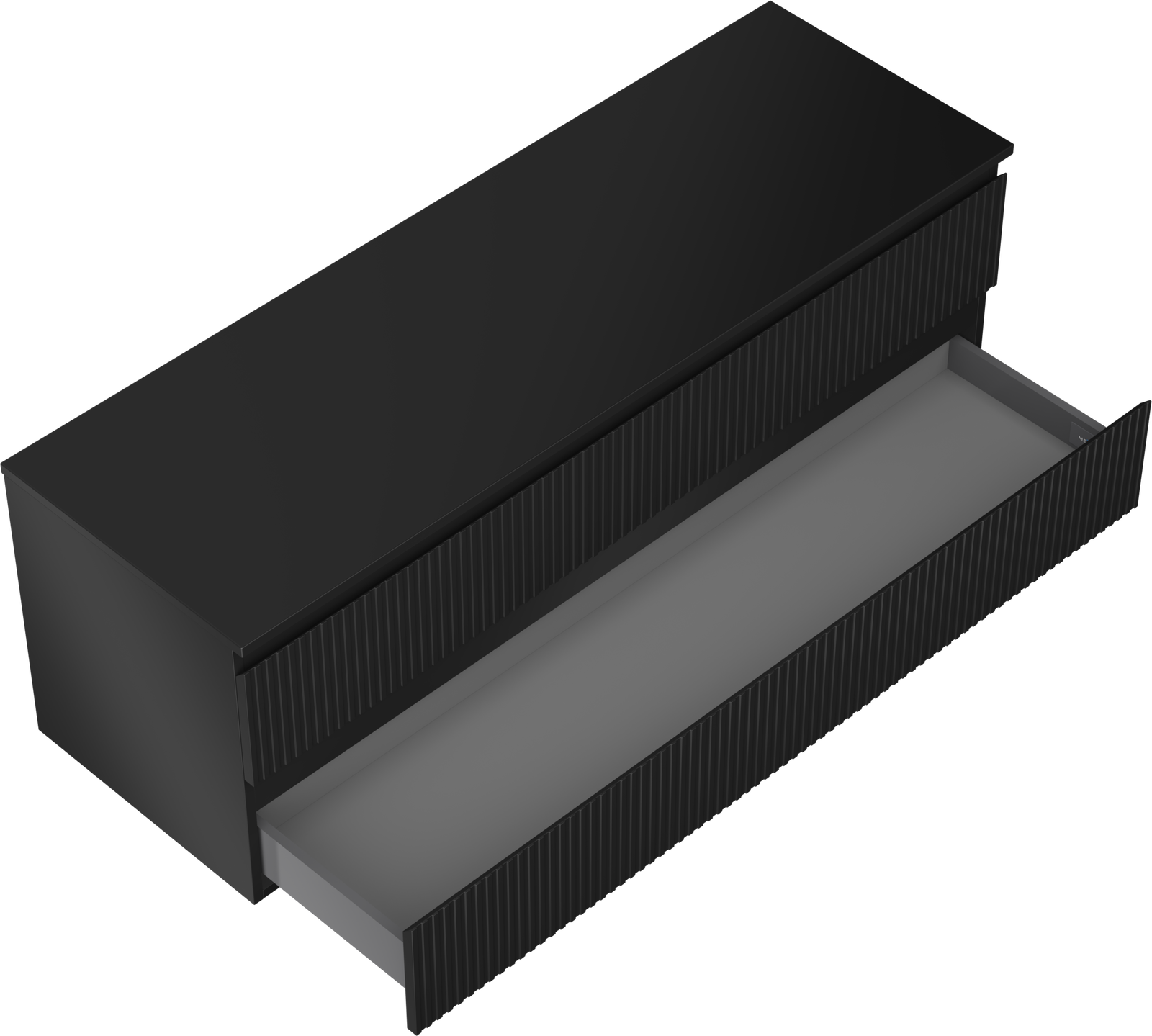 Mexen Rivel badkamerkast onder de wasbak 140 cm met blad, 2 laden, gegroefd, zwart mat - 91A20-14047-2-BFFC71