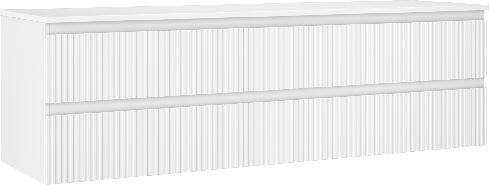 Mexen Rivel badkamerkast onder de wastafel 160 cm met blad, 2 laden, geribbeld, mat wit - 91A20-16047-2-BFFC01