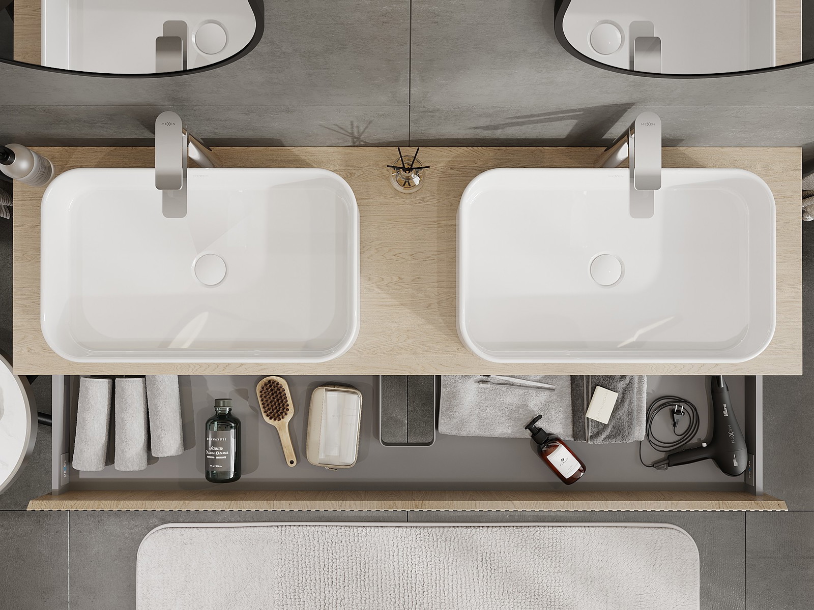 Onze modulaire badkamermeubels kunnen in verschillende kleurconfiguraties met elkaar worden gecombineerd, wat volledige personalisatie mogelijk maakt. Zowel het uiterlijk als de functies van de afzonderlijke elementen kunnen worden gekozen, waardoor de meubels kunnen worden aangepast aan persoonlijke stijlvoorkeuren en gebruikswensen.