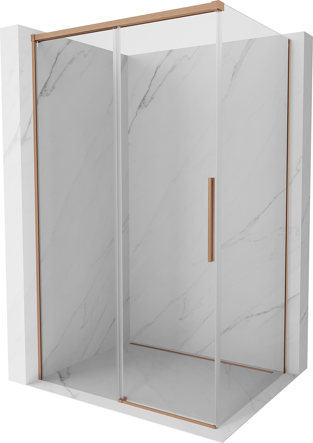 Mexen Rox schuifbare douchecabine 130 x 110 cm, transparant, geborsteld koper - 8C2-130-110-65-00