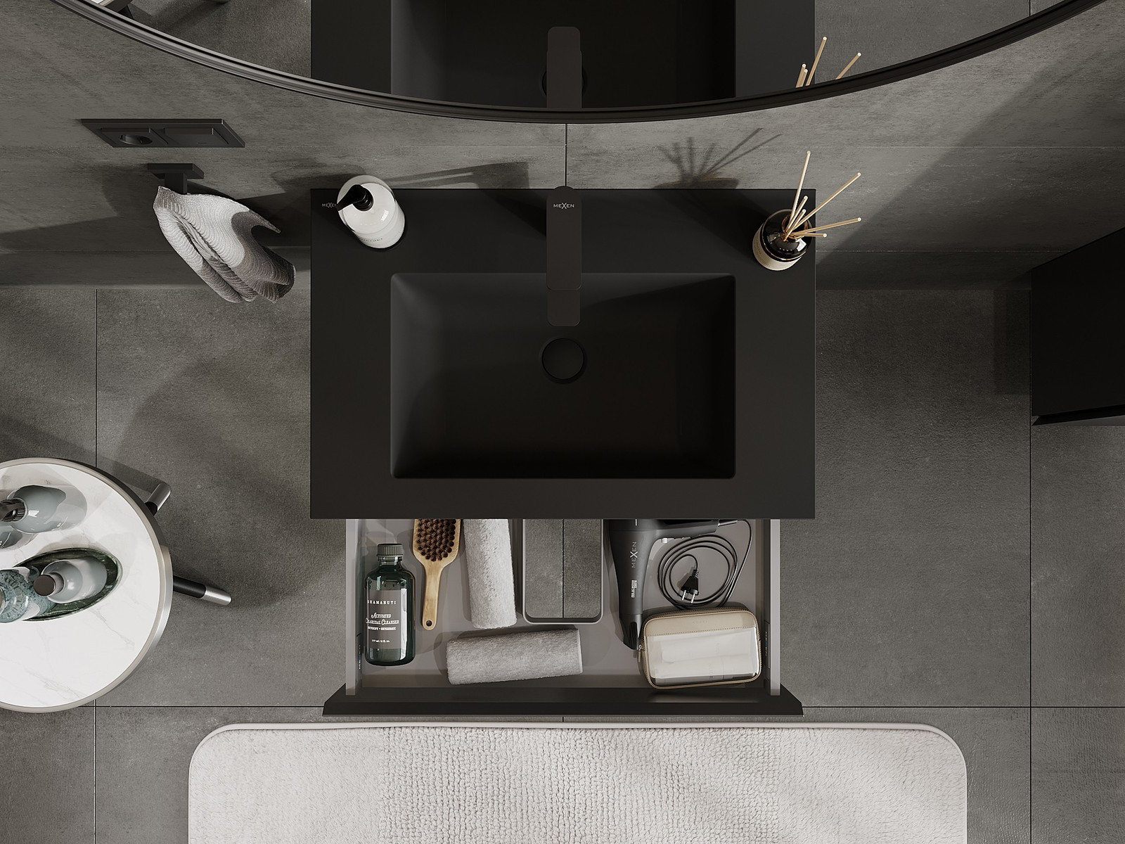 Mexen Orio badkamerkast 70 cm met wastafel Otis, 1 lade, zwart mat - 91A10-07023-1-BF71-W18M71