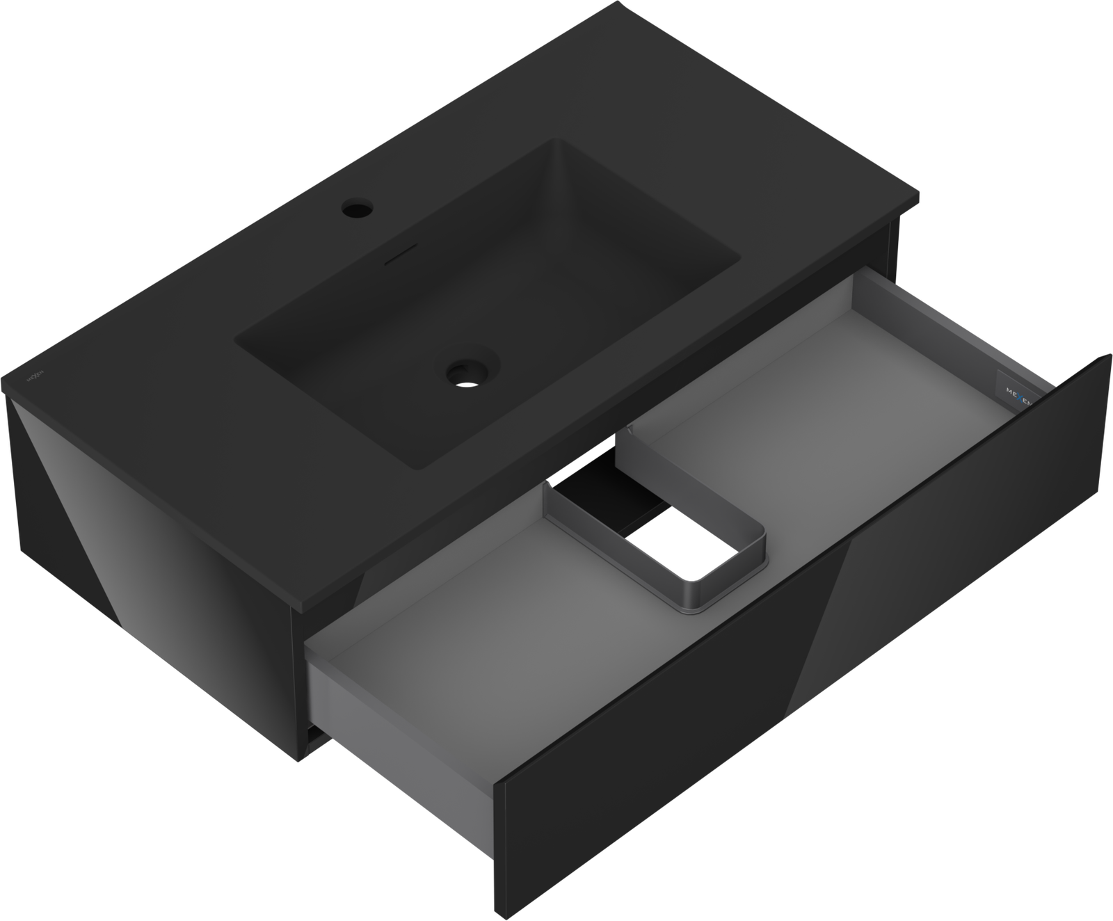 Mexen Orio badkamerkast 90 cm met wastafel Otis, 1 lade, zwart glans/zwart mat - 91A10-09023-1-BF70-W18M71