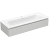 De uitsparing in de lade is zo ontworpen dat het de sifon kan bevatten, die noodzakelijk is in wastafelinstallaties. Hierdoor kan het meubel volledig functioneel worden gemonteerd, zonder dat er ruimte in de lade opgeofferd hoeft te worden voor installatiedoeleinden.