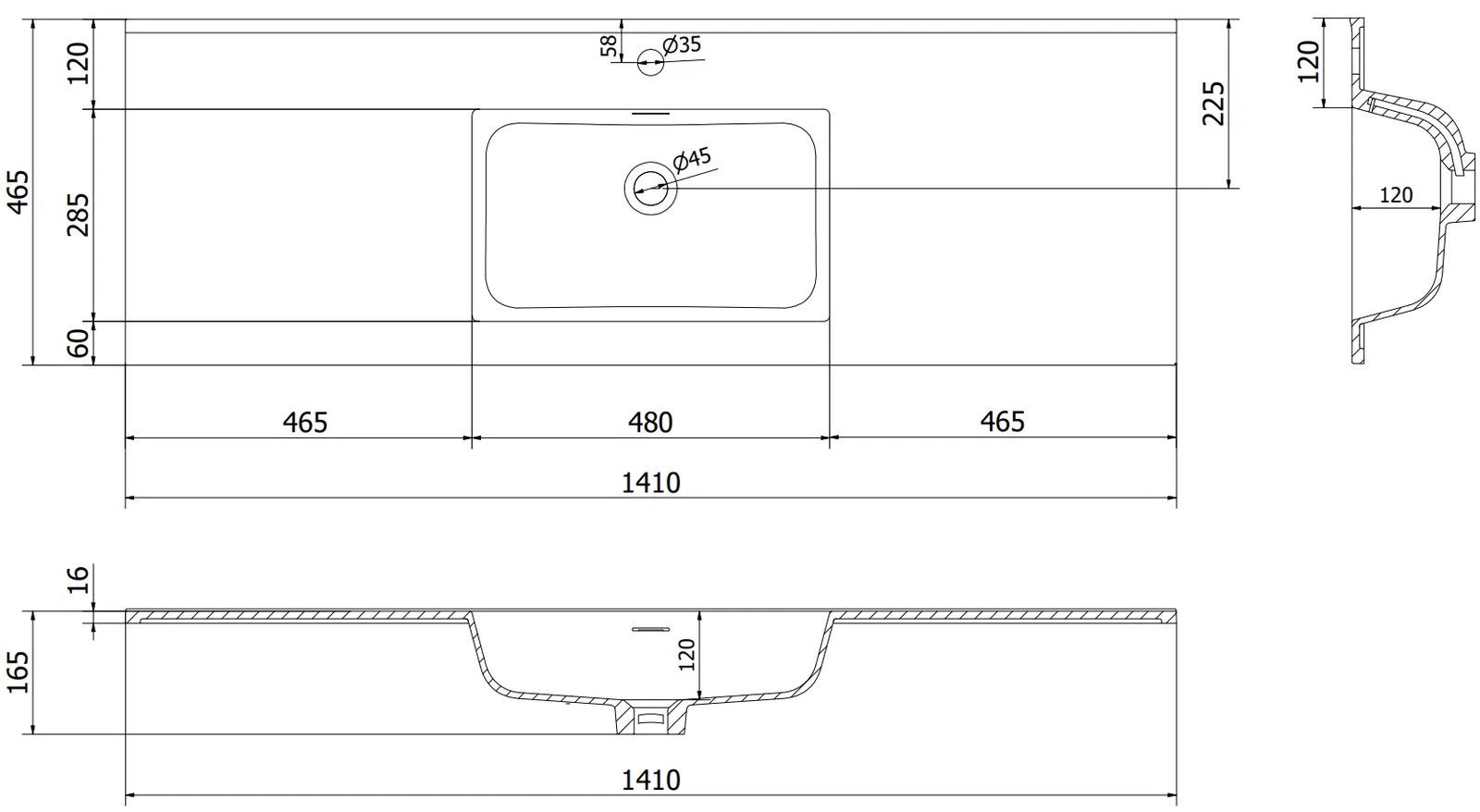 Afmetingen van de wastafel: