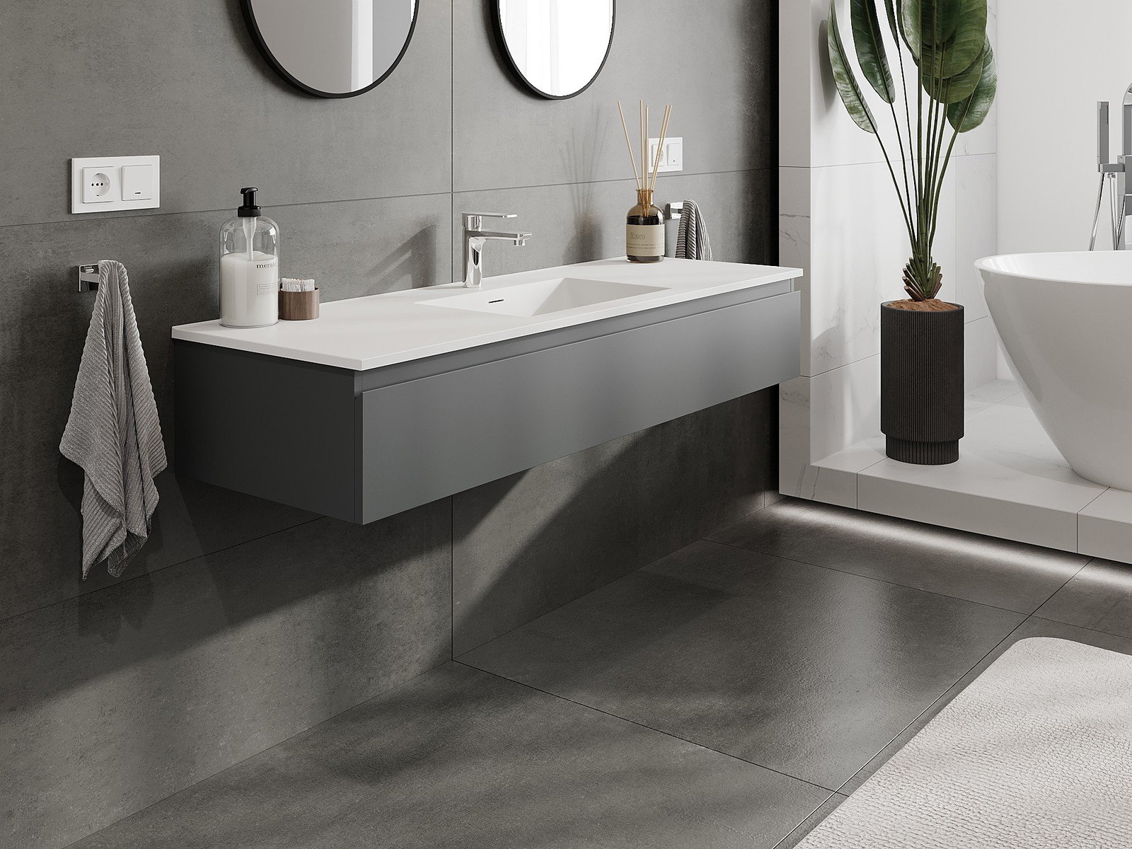Onze modulaire badkamermeubels kunnen in verschillende kleurconfiguraties met elkaar worden gecombineerd, wat volledige personalisatie mogelijk maakt. Zowel het uiterlijk als de functies van de afzonderlijke elementen kunnen worden gekozen, waardoor de meubels kunnen worden aangepast aan persoonlijke stijlvoorkeuren en gebruikswensen.